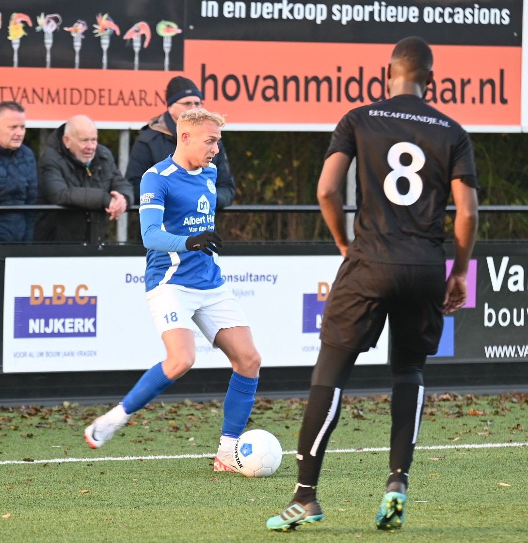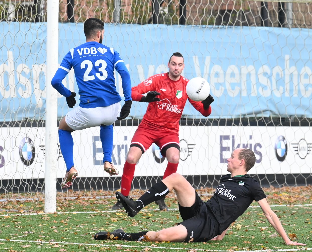 Veensche Boys heeft zaterdag 25 november geen spaan heel gelaten van FC Hilversum. Tegen de rode lantaarndrager werd het 7-2, maar de ploeg uit Nijkerkerveen had ook zomaar met dubbele cijfers kunnen winnen. Bij de laatste goal van Veensche Boys liep de keeper van Hilversum zelfs boos het veld af en kwam pas weer na aandringen van de scheidsrechter terug. Vijf goals werden gemaakt door Tom van Donselaar. Veensche Boys klimt met dit resultaat op naar de derde plek, op vier punten afstand van koploper Nieuw Utrecht.