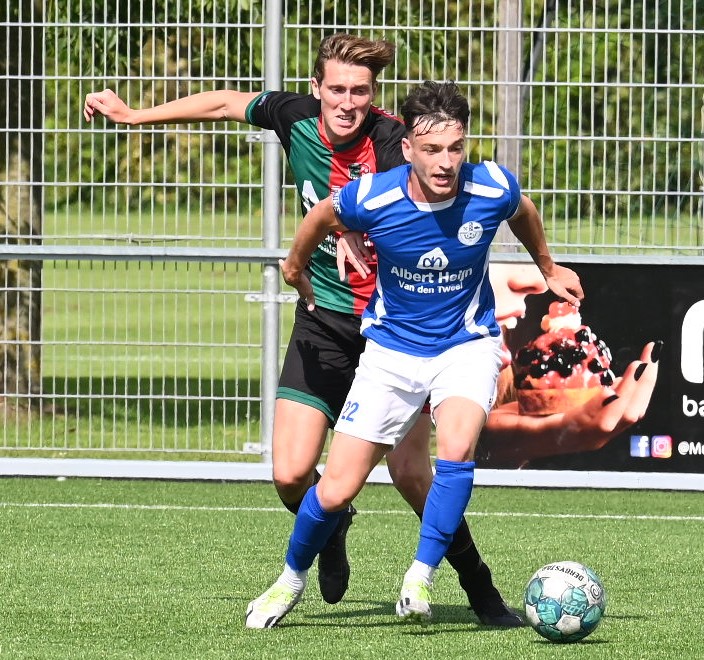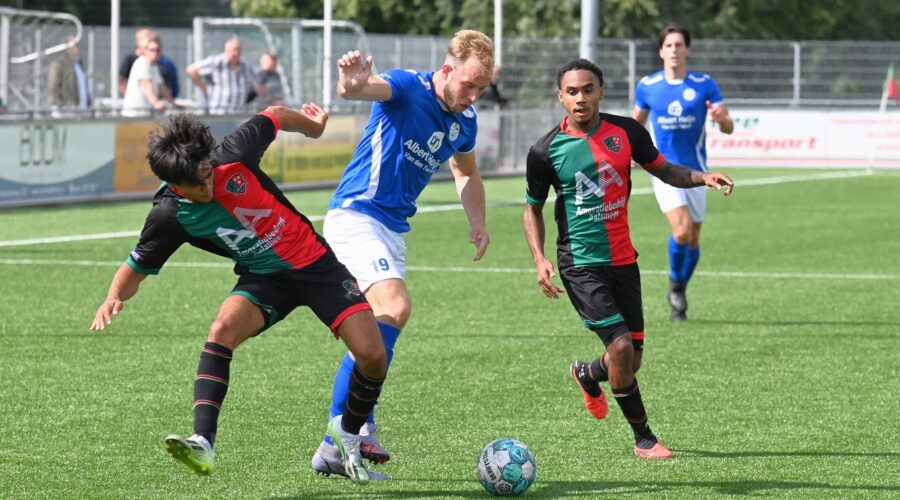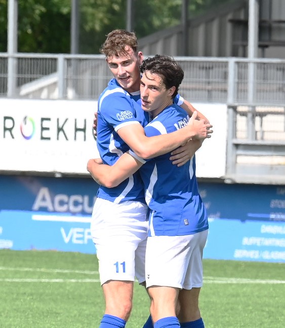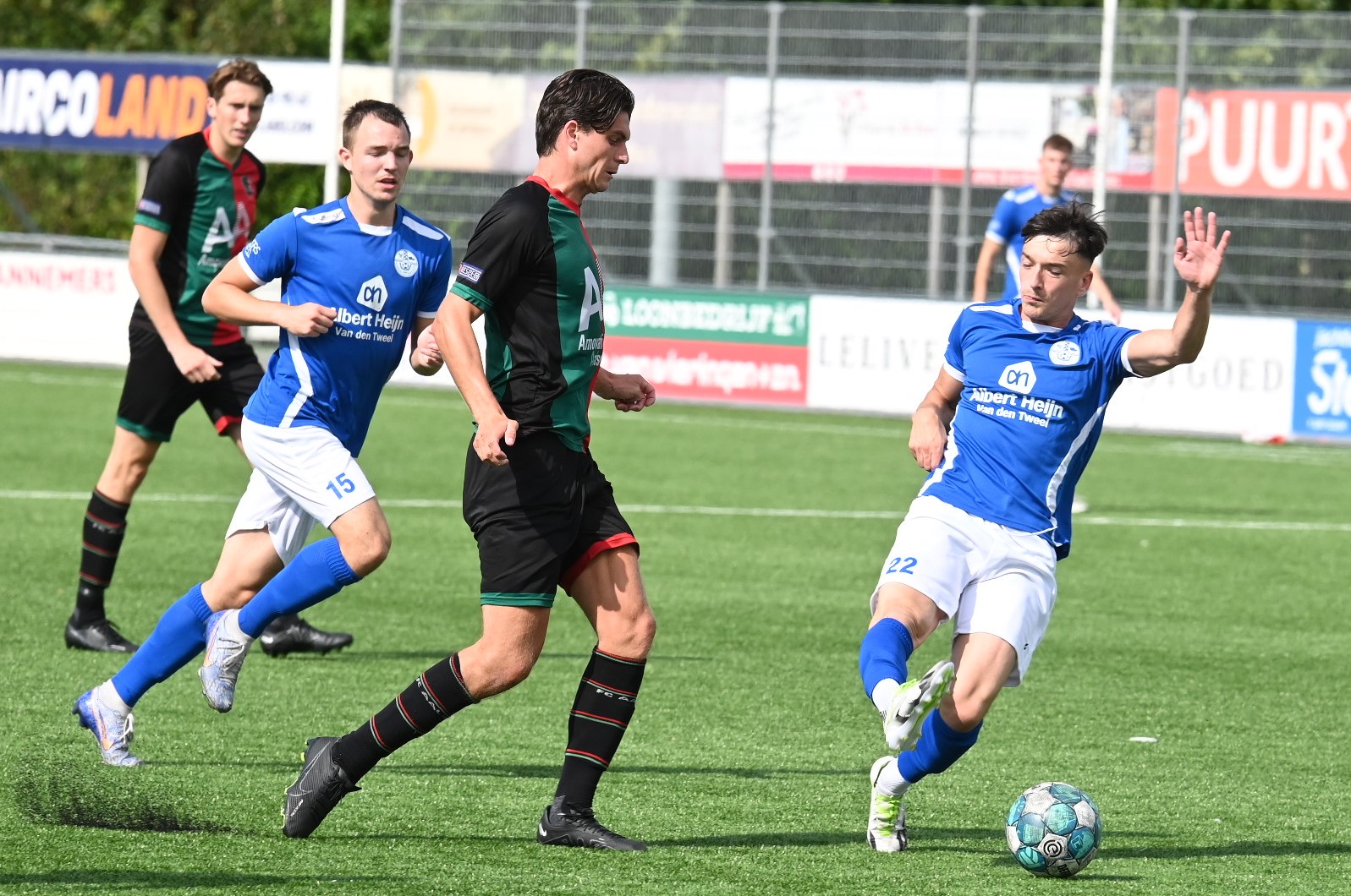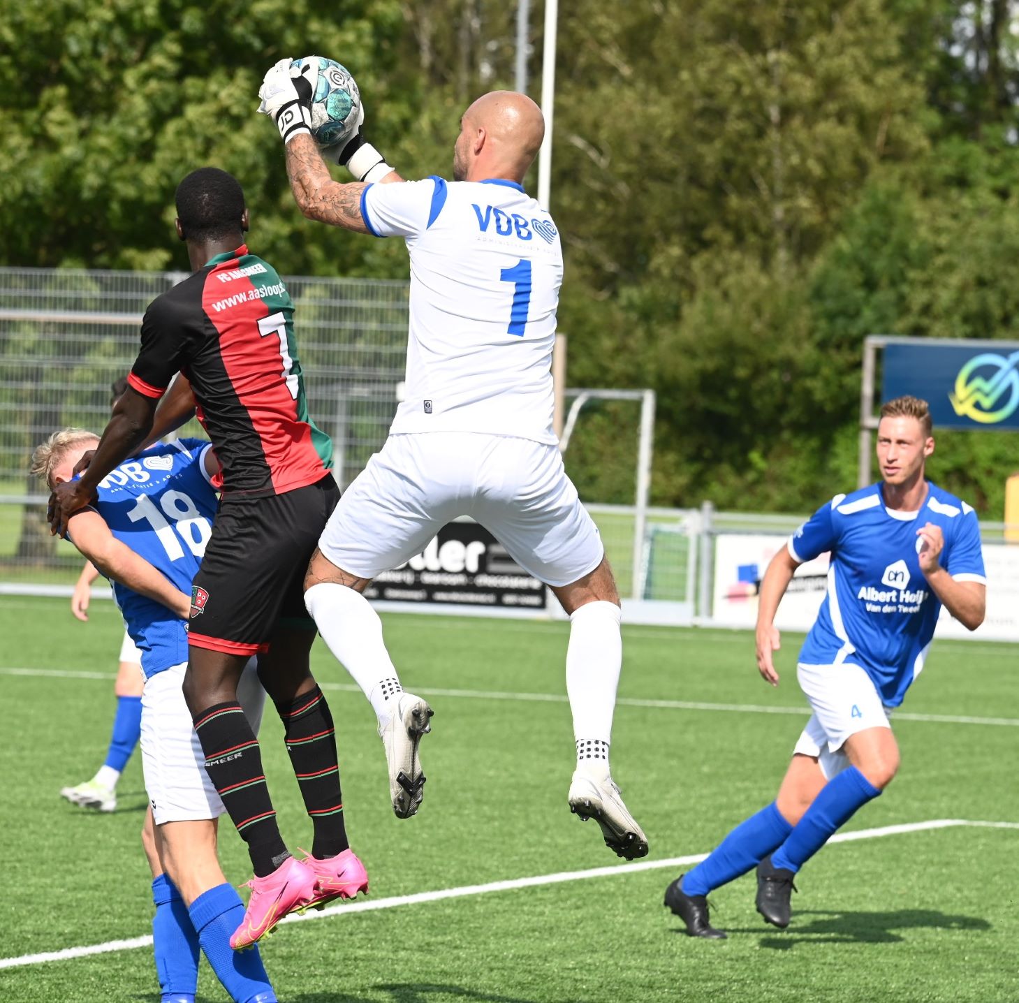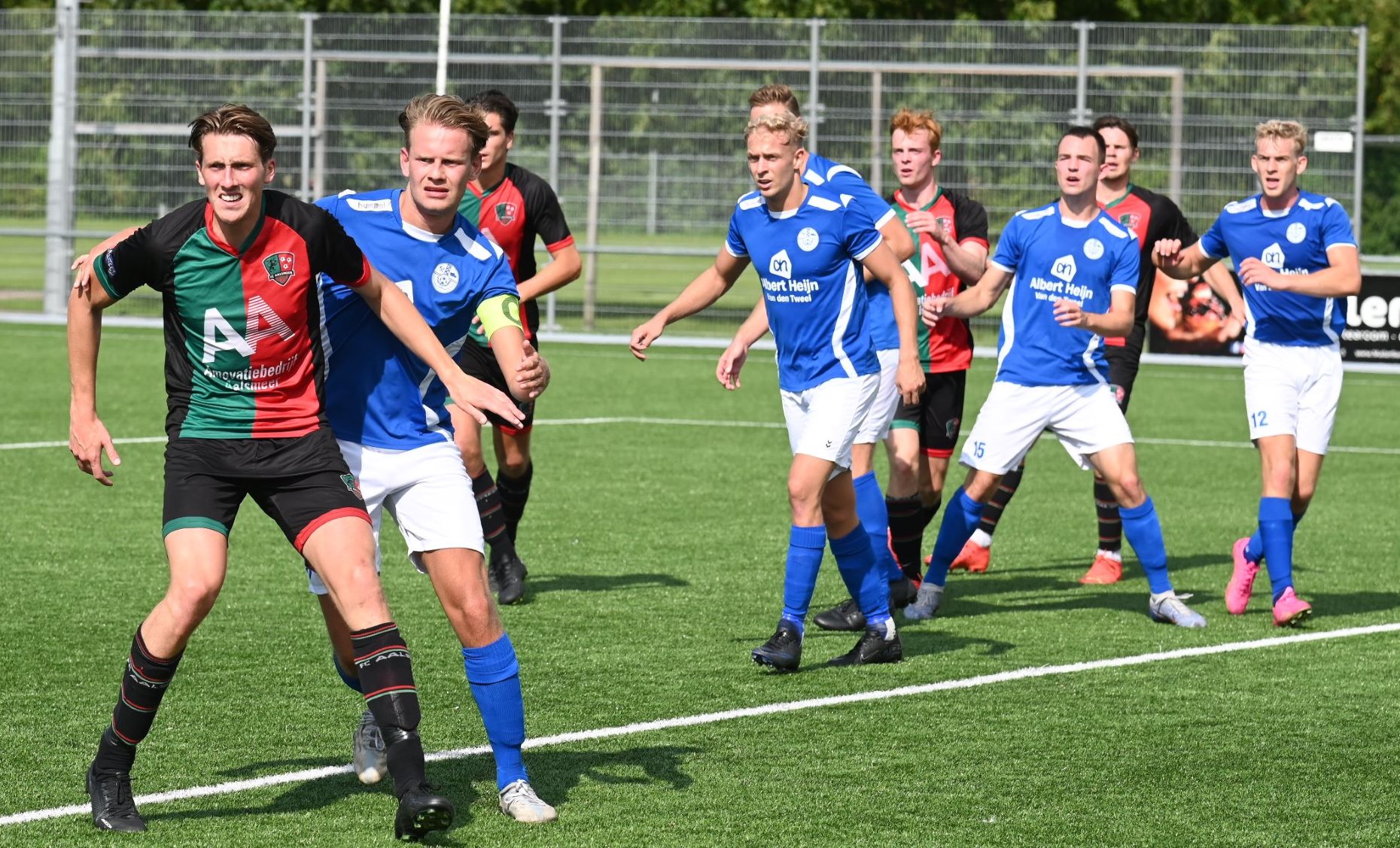 Veensche Boys heeft in haar oefenperiode weer flink toegeslagen. Op bezoek bij FC Aalsmeer werd zaterdag 26 augustus met 2-4 van de gastheren gewonnen. Aanvankelijk kwam FC Aalsmeer via een penalty van Luke Vahle aan kop, maar daarna sloeg Veensche Boys razendsnel toe. Het werd in luttele momenten 1-4 dankzij goals van aanvoerder Nico van den Brom, spits Corné Parol en de vleugelaanvallers Julian Buitenhuis en Tom van Donselaar. Het is dat de keeper van Aalsmeer een sta-in-de-weg bleek, maar anders was de score nog verder opgelopen. In de tweede helft was Veensche Boys alleen nog de eerste tien minuten angstvallig dichtbij de goal van de tegenstander, maar FC Aalsmeer dicteerde daarna het spel. Opnieuw door een penalty van Luke Vahle, na een lichte overtreding van Mauro Peters in het strafschopgebied, wist FC Aalsmeer de schade nog enigszins te beperken. Diezelfde Vahle ging later nog geblesseerd aan zijn rug van het veld. Foto Kees van den Heuvel