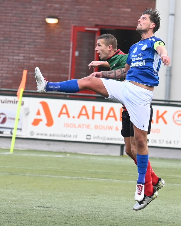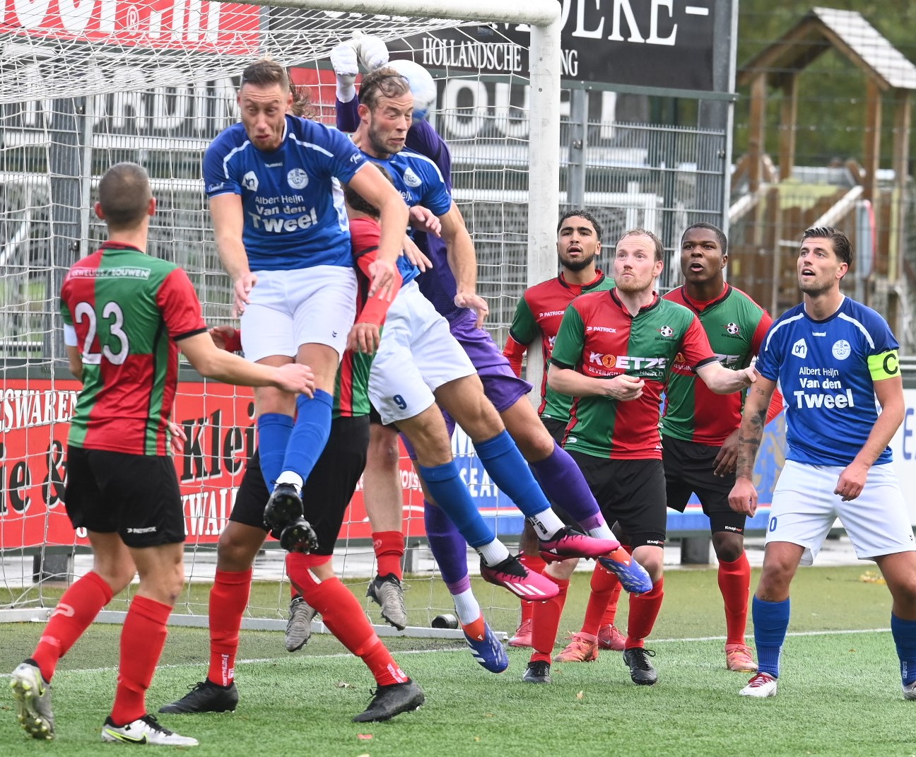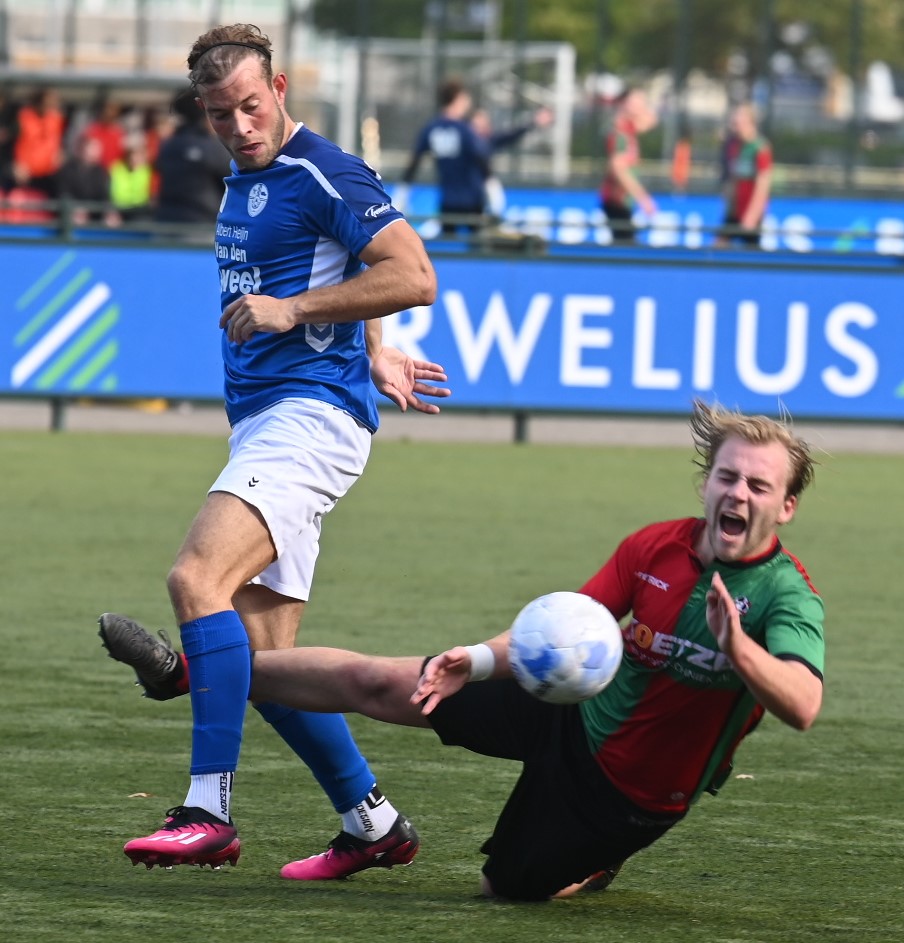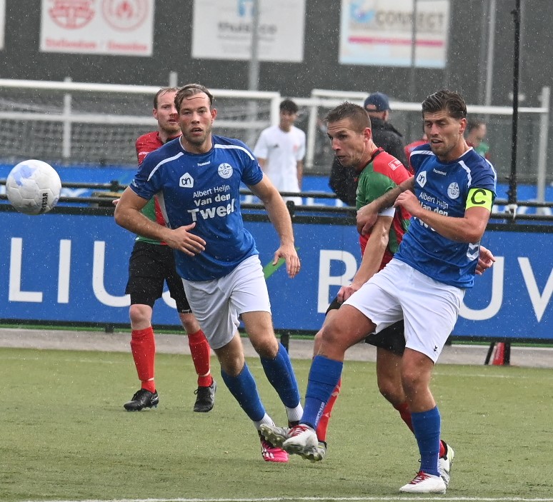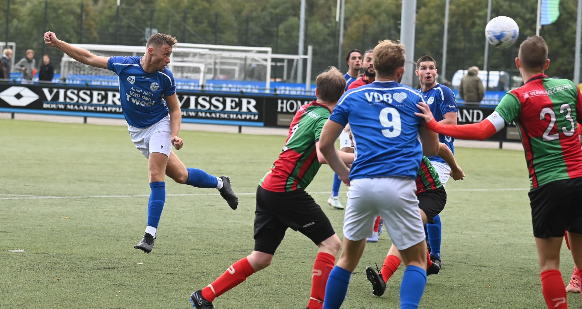 Het was een repeterend scenario. Veensche Boys speelde, net als in de voorgaande wedstrijden, met veel balbezit en was dominant voor de goal van de tegenstander. Alleen willen de goals maar niet vallen. Zo ook tegen de Zuidvogels. Die kwamen na bijna een half uur op een voorsprong bij de eerste de beste kans. En daar ging bovendien slordig balverlies op de middenveld van Veensche Boys aan vooraf. Veensche Boys deed verwoede pogingen om de gelijkmaker te produceren, maar de bal wilde er maar niet in. Zo struikelde Corne Parol op zijn nieuwe schoenen voor een open goal over zijn eigen voeten en hoefde na rust Michel Goossensen maar zijn schoen iets te verplaatsen om een strakke voorzet in de goal te werken, maar niets leek te lukken. De scheidsrechter liet lang doorspelen, mede door blessurebehandelingen bij de keeper van de tegenstander en zo lukte het in de vierde minuut van de blessuretijd alsnog om langszij te komen. Uit een voorzet van Goossensen kopte Corne Parol de bal diagonaal raak. Het betekende het eerste competitiepunt van Veensche Boys in de competitie. Foto Kees van den Heuvel