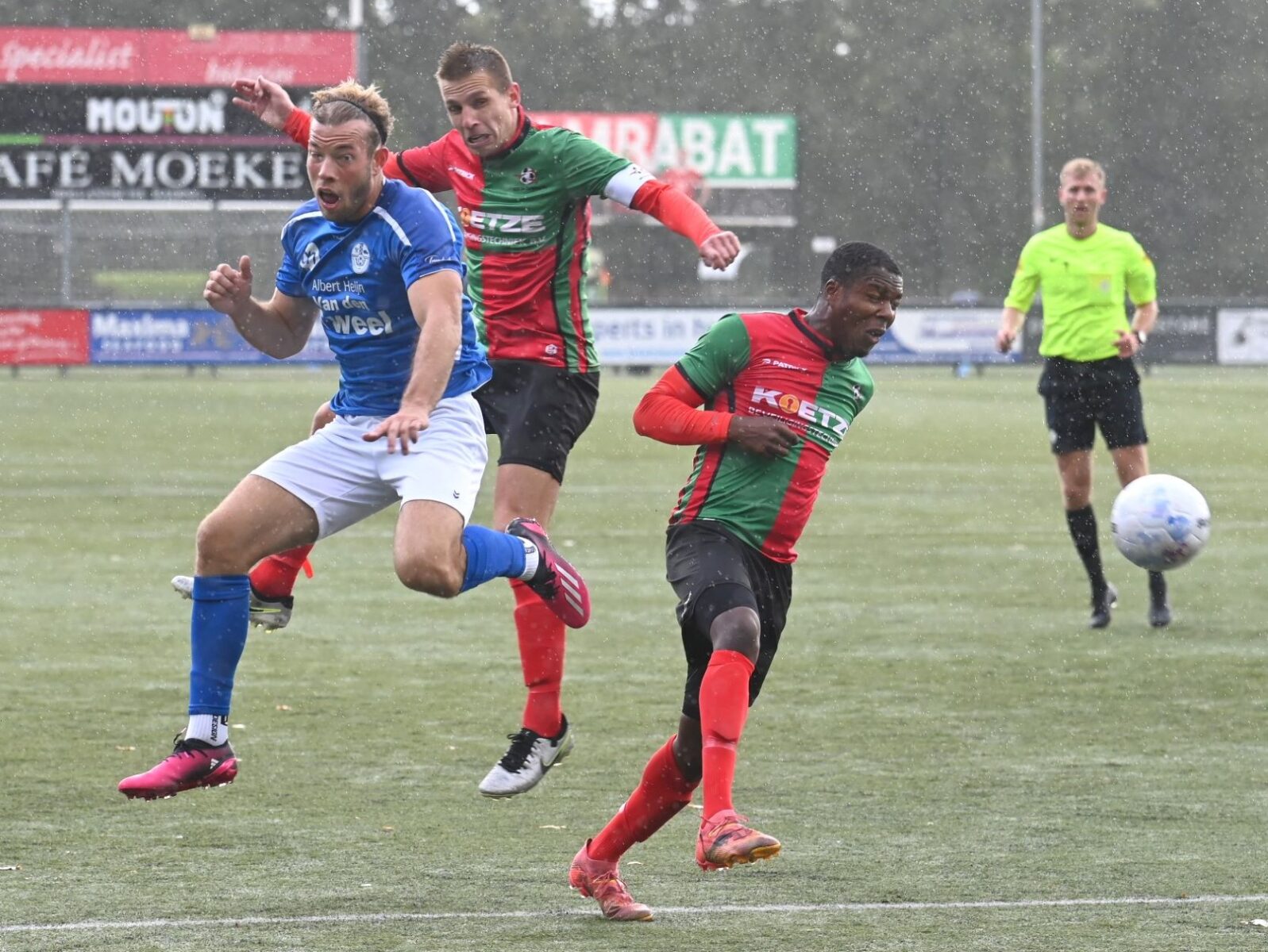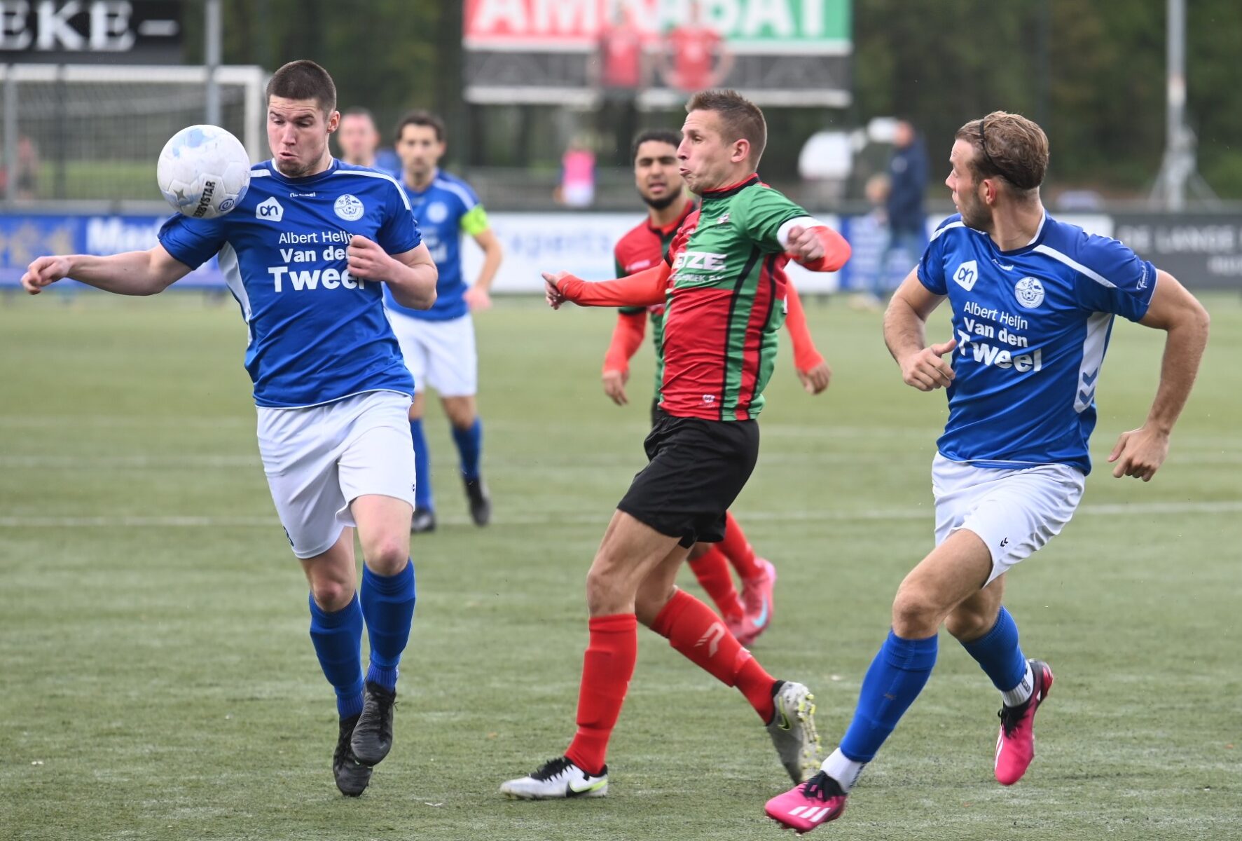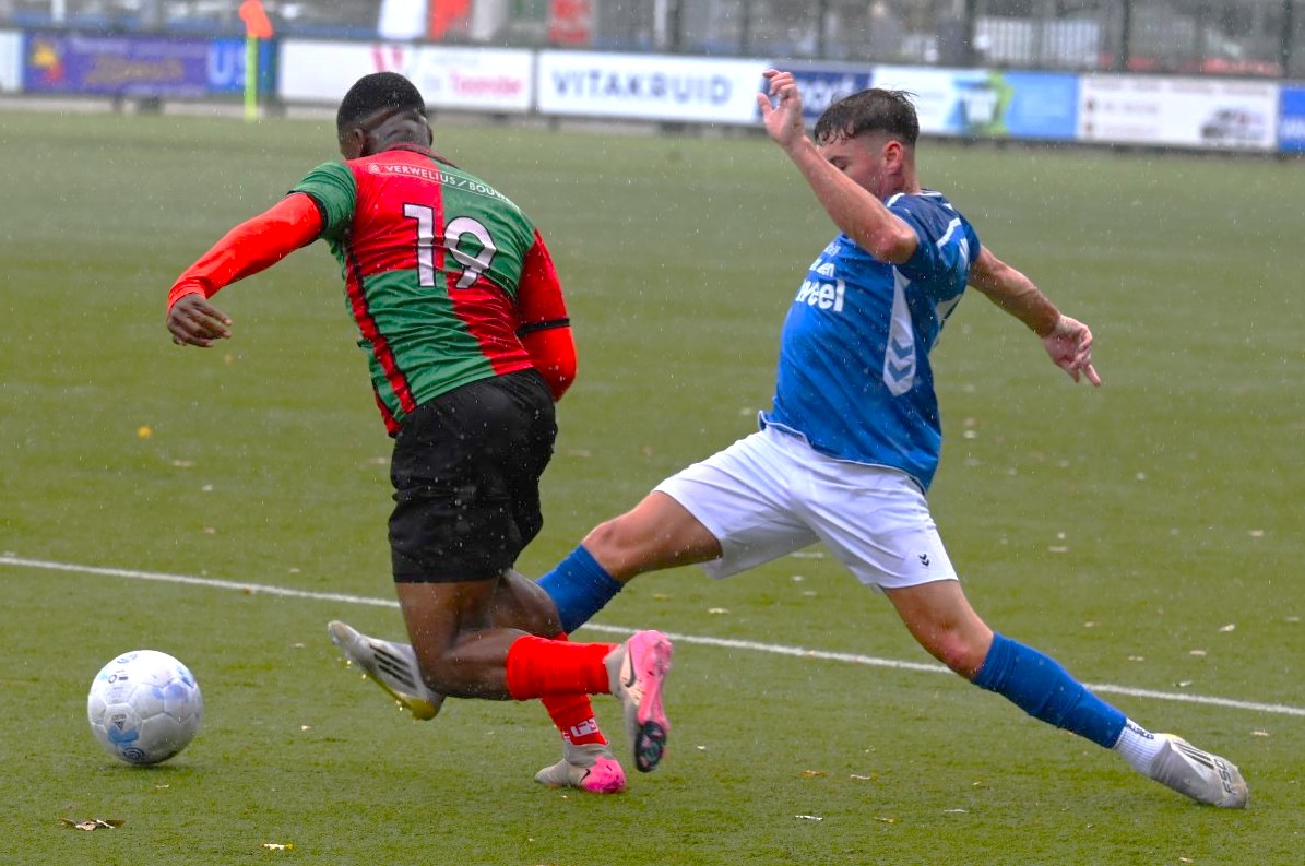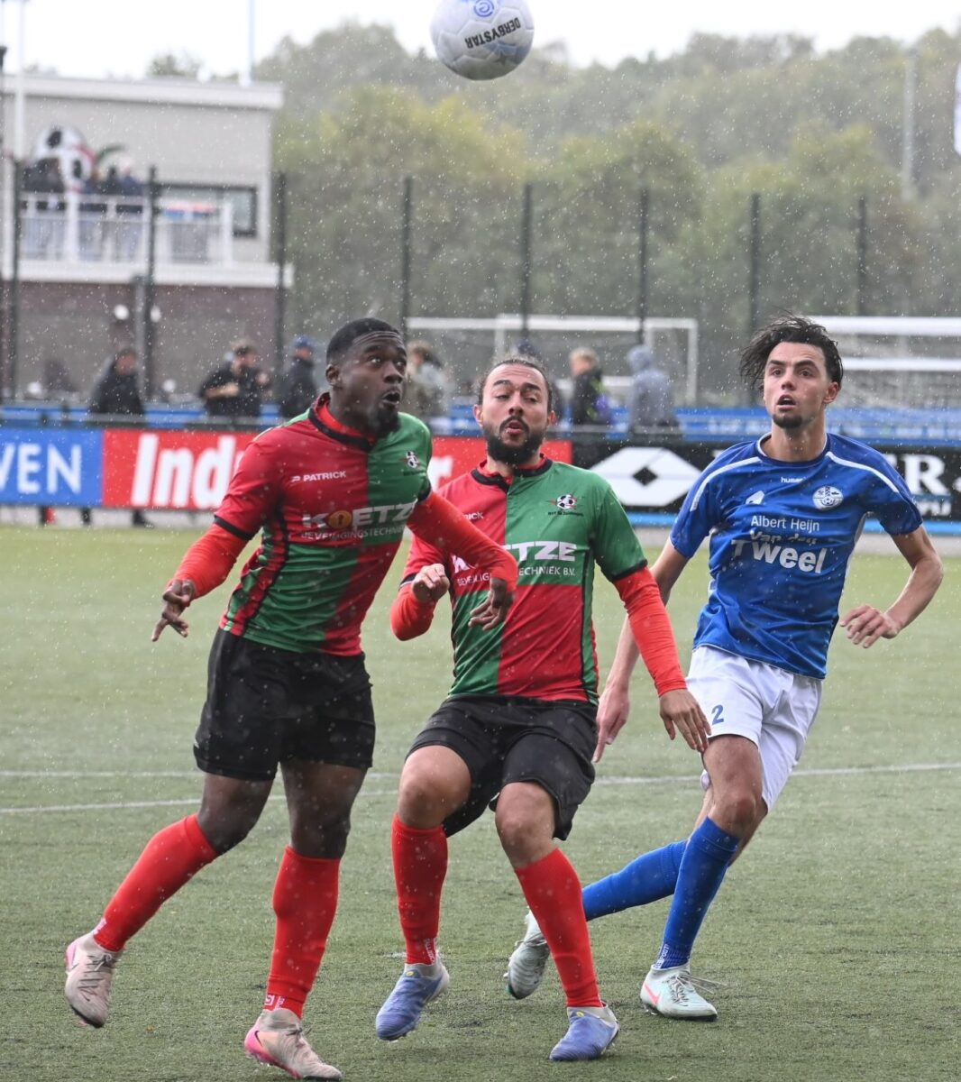 Het was een repeterend scenario. Veensche Boys speelde, net als in de voorgaande wedstrijden, met veel balbezit en was dominant voor de goal van de tegenstander. Alleen willen de goals maar niet vallen. Zo ook tegen de Zuidvogels. Die kwamen na bijna een half uur op een voorsprong bij de eerste de beste kans. En daar ging bovendien slordig balverlies op de middenveld van Veensche Boys aan vooraf. Veensche Boys deed verwoede pogingen om de gelijkmaker te produceren, maar de bal wilde er maar niet in. Zo struikelde Corne Parol op zijn nieuwe schoenen voor een open goal over zijn eigen voeten en hoefde na rust Michel Goossensen maar zijn schoen iets te verplaatsen om een strakke voorzet in de goal te werken, maar niets leek te lukken. De scheidsrechter liet lang doorspelen, mede door blessurebehandelingen bij de keeper van de tegenstander en zo lukte het in de vierde minuut van de blessuretijd alsnog om langszij te komen. Uit een voorzet van Goossensen kopte Corne Parol de bal diagonaal raak. Het betekende het eerste competitiepunt van Veensche Boys in de competitie. Foto Kees van den Heuvel