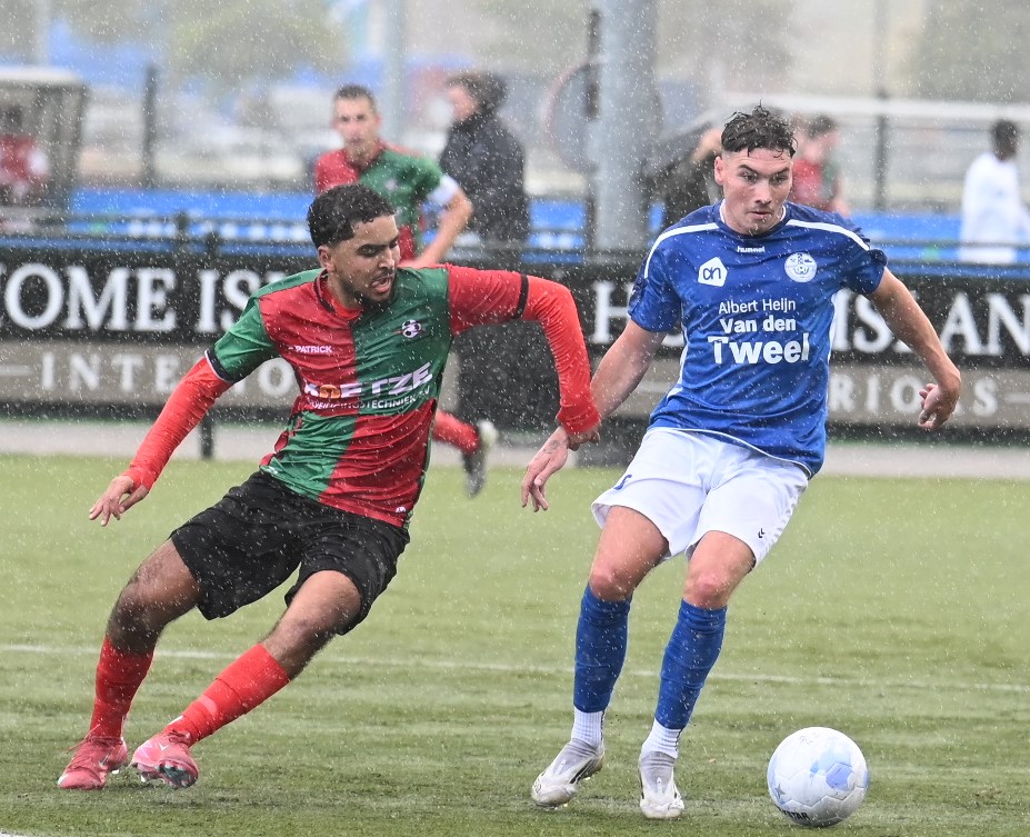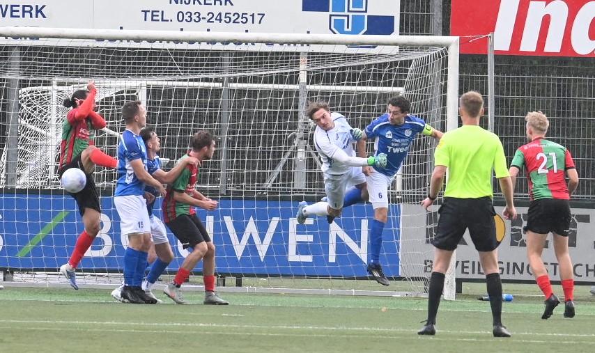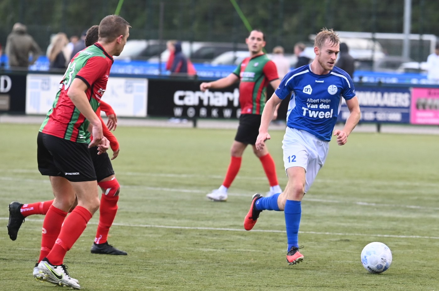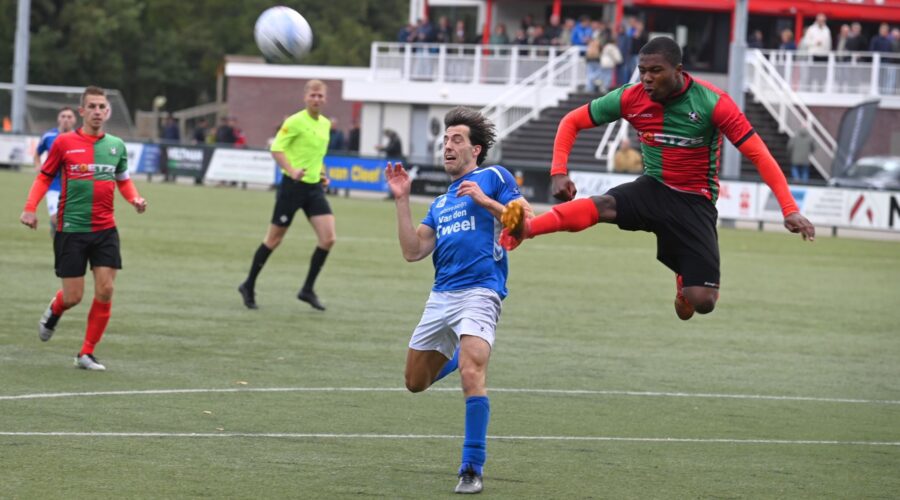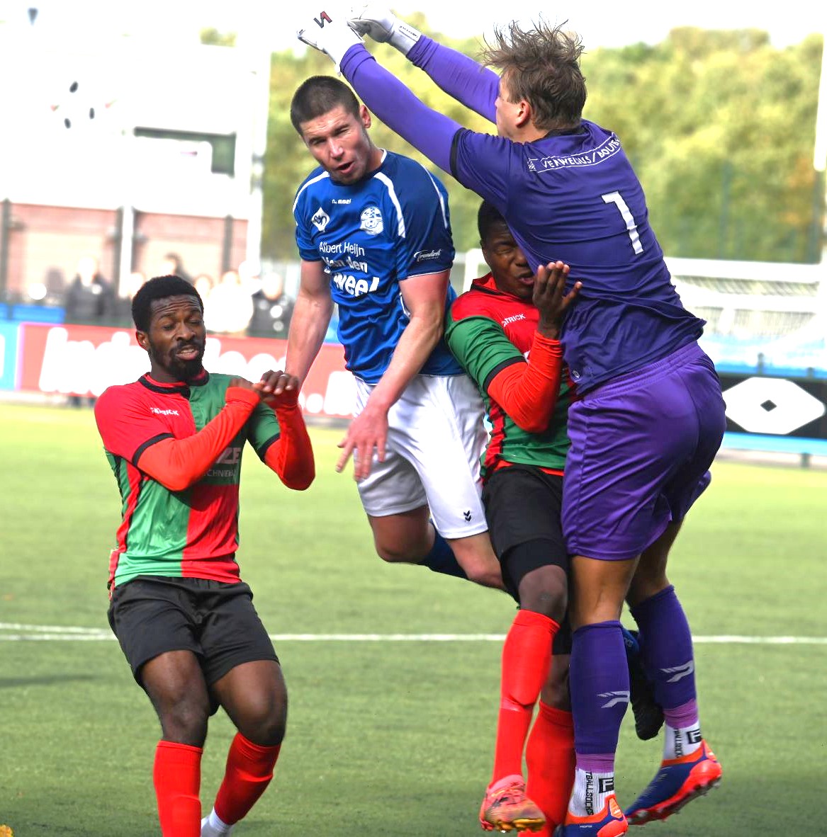 Het was een repeterend scenario. Veensche Boys speelde, net als in de voorgaande wedstrijden, met veel balbezit en was dominant voor de goal van de tegenstander. Alleen willen de goals maar niet vallen. Zo ook tegen de Zuidvogels. Die kwamen na bijna een half uur op een voorsprong bij de eerste de beste kans. En daar ging bovendien slordig balverlies op de middenveld van Veensche Boys aan vooraf. Veensche Boys deed verwoede pogingen om de gelijkmaker te produceren, maar de bal wilde er maar niet in. Zo struikelde Corne Parol op zijn nieuwe schoenen voor een open goal over zijn eigen voeten en hoefde na rust Michel Goossensen maar zijn schoen iets te verplaatsen om een strakke voorzet in de goal te werken, maar niets leek te lukken. De scheidsrechter liet lang doorspelen, mede door blessurebehandelingen bij de keeper van de tegenstander en zo lukte het in de vierde minuut van de blessuretijd alsnog om langszij te komen. Uit een voorzet van Goossensen kopte Corne Parol de bal diagonaal raak. Het betekende het eerste competitiepunt van Veensche Boys in de competitie. Foto Kees van den Heuvel
