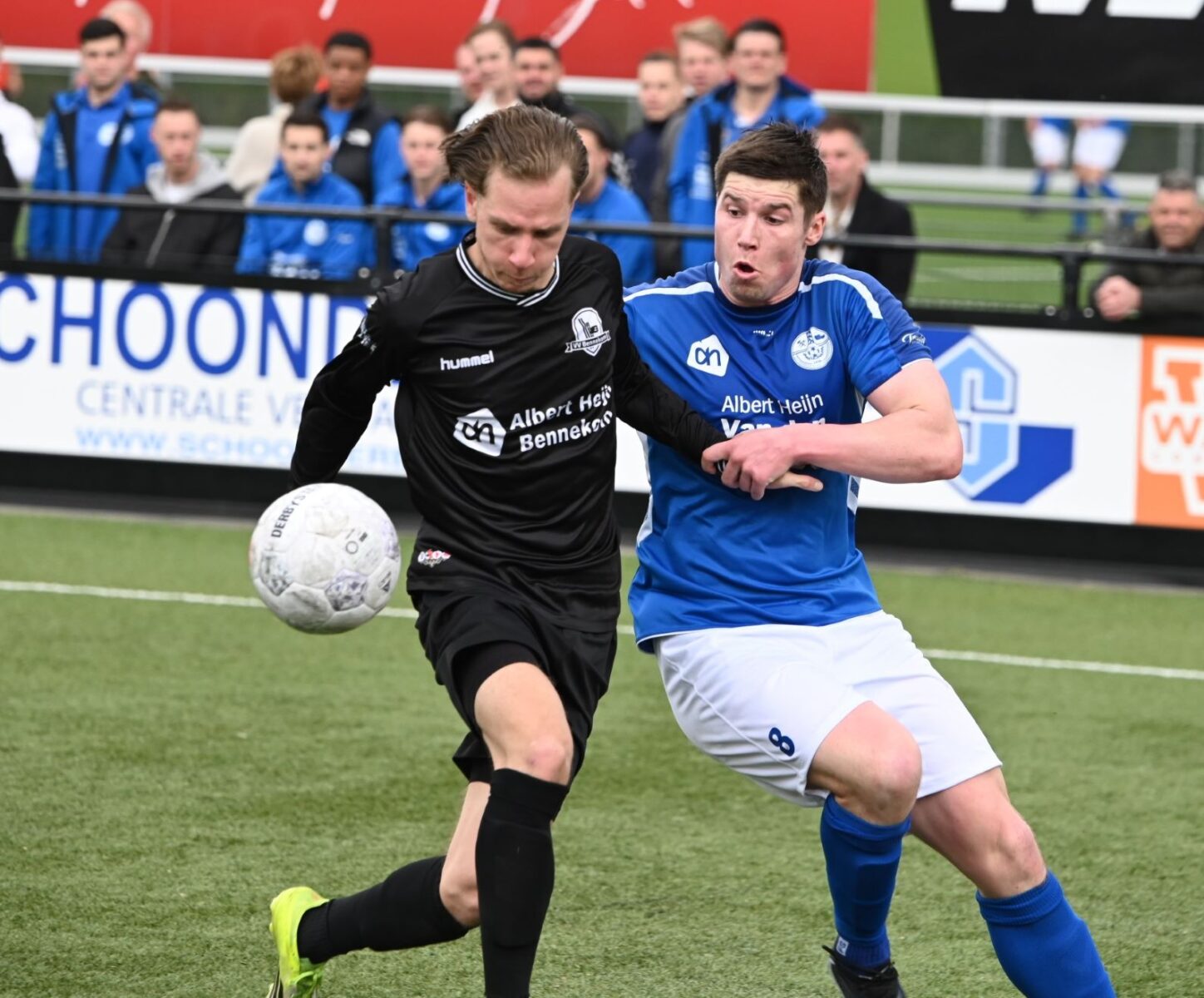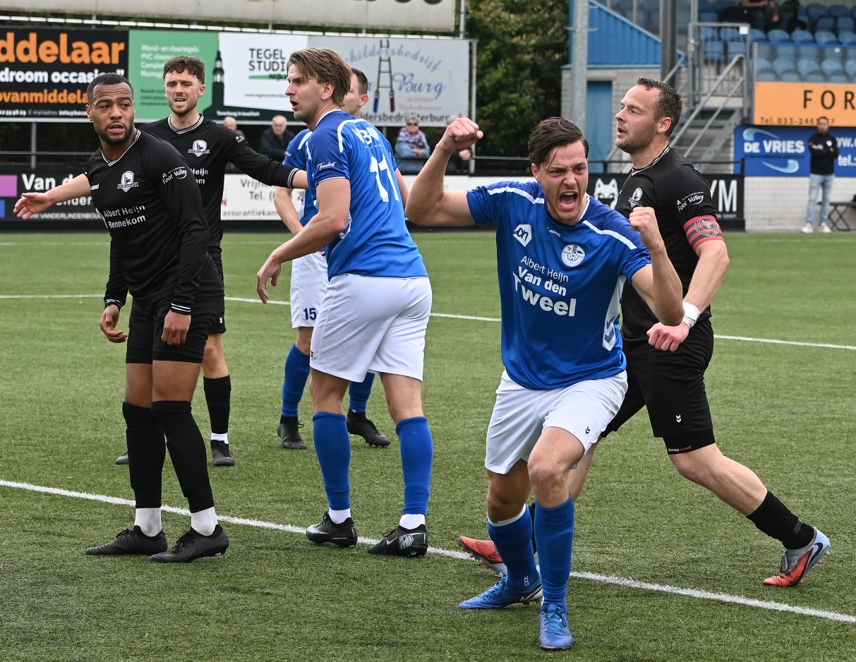 Na de hervatting kwam de ploeg van Veensche Boys getergd het veld op. Al snel volgde de gelijkmaker, die gepaard ging met enige discussie. Wederom was het Justin Ruizendaal die de bal richting het doel werkte. Terwijl Bennekom claimde dat de bal de lijn niet had gepasseerd, oordeelde de neutrale grensrechter resoluut dat het een doelpunt was: 2-2. Vanaf dat moment was het hek van de dam. Veensche Boys rook bloed en trok het initiatief volledig naar zich toe. De aanvalsdrift werd beloond toen Yannick Bouw de 3-2 binnenschoot, waarmee hij de wedstrijd volledig kantelde. In de absolute slotfase gooide Corné Parol de wedstrijd definitief in het slot. Na voorbereidend werk van de hardwerkende Michel Goossensen schoof Parol de 4-2 eindstand tegen de touwen. Dankzij deze overwinning klimt Veensche Boys weg uit de gevarenzone. Met het vertoonde spel en de strijdlust van de tweede helft lijkt het verblijf in de Eerste Klasse F voor volgend seizoen nagenoeg zeker gesteld. Foto en bron Kees van den Heuvel
