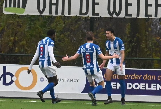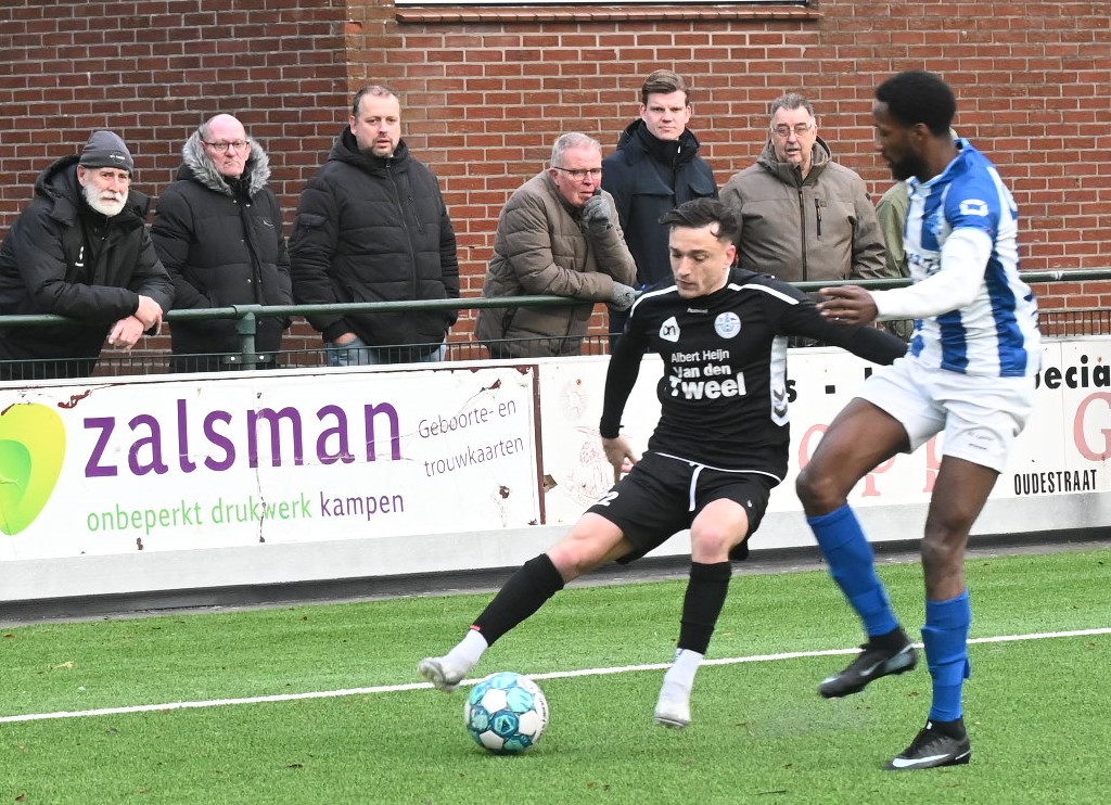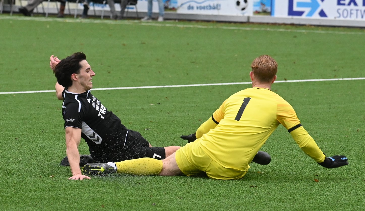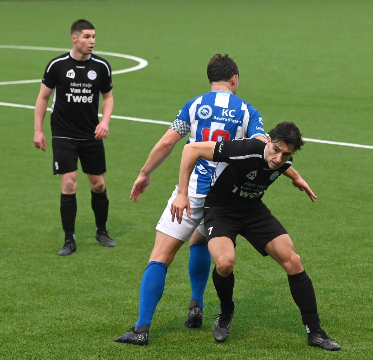 Fraai was de wedstrijd niet. Waar Veensche Boys eerder dit seizoen in de voorbereiding tweemaal wist te winnen van KHC, gingen ze 6 december bijna (onterecht) de bietenbrug op. De wedstrijd was een aaneenschakeling van fouten, van beide kanten. Met gemak had Veensche Boys op voorsprong kunnen komen, maar de rust, scherpte en het overzicht ontbraken om de bal in de goal te laten verdwijnen. En als de goal niet valt in het ene doel, dan gebeurt dat aan de overzijde. En zo kwam KHC in de 38ste minuut op voorsprong via Junny Samboe die langs twee tegenstanders rushte en de bal met een boog in de kruising krulde. Na rust was het andermaal Veensche Boys dat de klok sloeg, maar het ontbrak aan de eindpass. Tot ieders ontzetting bij Veensche Boys werd het ook nog 2-0 via Illias El Morabit. En KHC had één op één met keeper Wessel Bosman zelfs nog een keer kunnen scoren, maar geschrokken van de kans, belandde de bal in de handen van de Veense goalie. Uiteindelijk kwam Veensche Boys alsnog op 2-1. Zeven minuten voor tijd scoorde Laurens de Korte. Ver in de blessuretijd – de klok stond inmiddels op tien minuten extra tijd – scoorde Mark de Graaf na fraai aangeven door Tom van Donselaar. Het is nu winterstop. In plaats van Jeroen Peters voerde assistenttrainer Stefan Fredriksen na afloop het woord. Hij betreurde de foutenparade en schaamde zich dood voor het tumult op de tribune, waar ‘nota bene kinderen bij aanwezig waren’. Foto Kees van den Heuvel