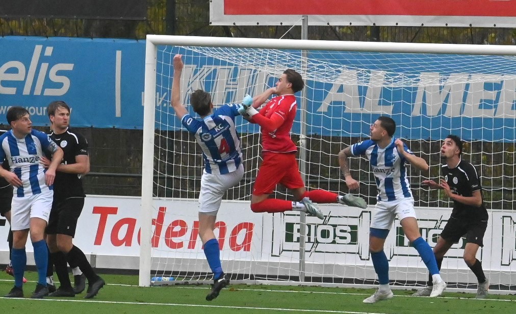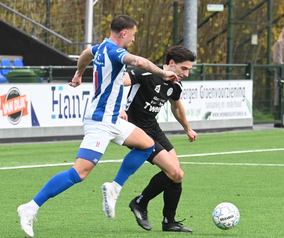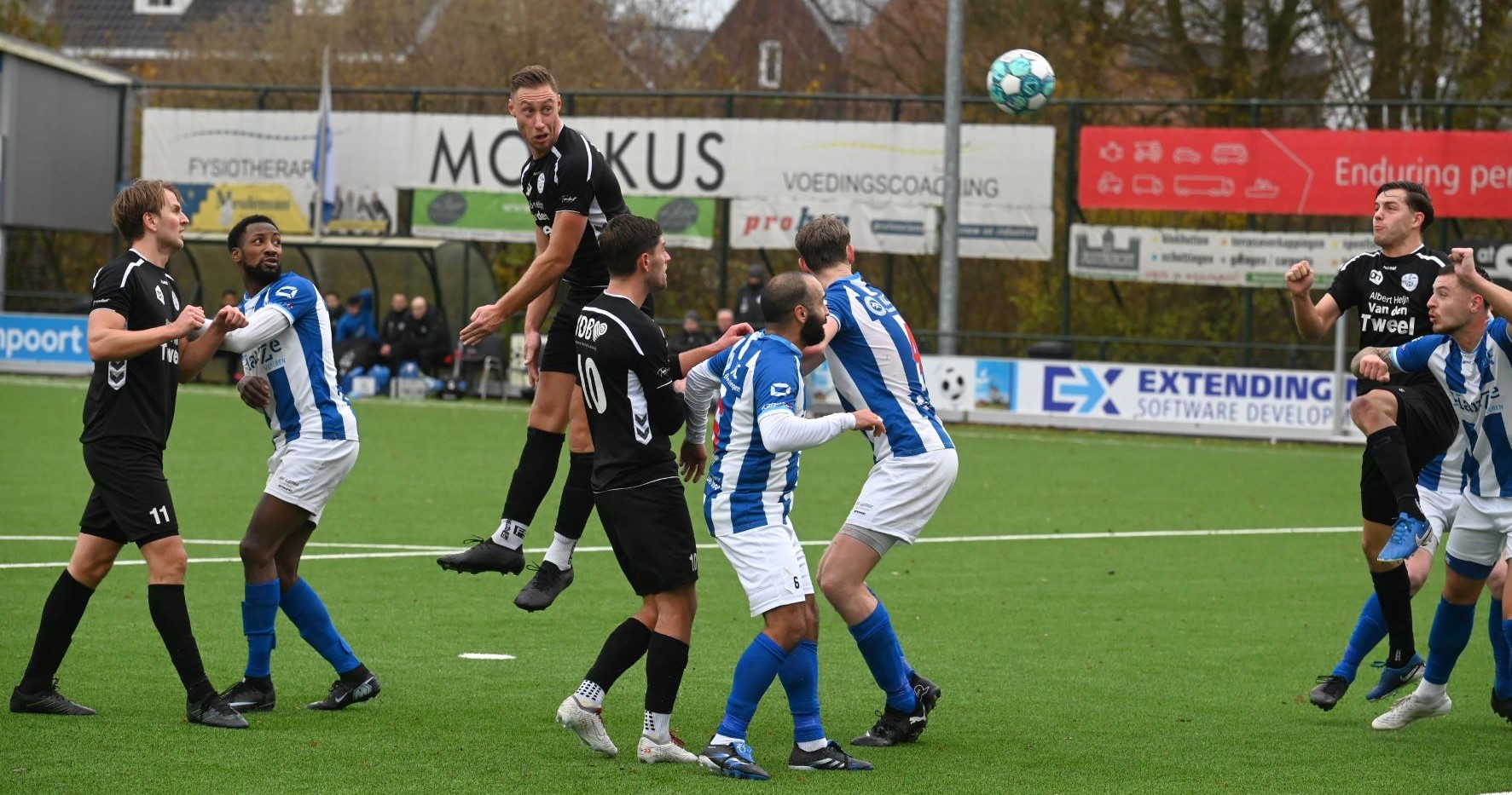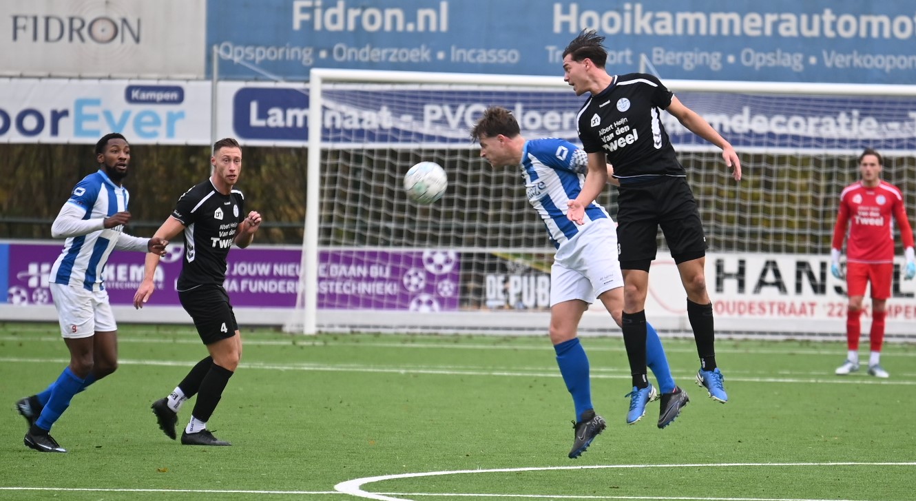 Fraai was de wedstrijd niet. Waar Veensche Boys eerder dit seizoen in de voorbereiding tweemaal wist te winnen van KHC, gingen ze 6 december bijna (onterecht) de bietenbrug op. De wedstrijd was een aaneenschakeling van fouten, van beide kanten. Met gemak had Veensche Boys op voorsprong kunnen komen, maar de rust, scherpte en het overzicht ontbraken om de bal in de goal te laten verdwijnen. En als de goal niet valt in het ene doel, dan gebeurt dat aan de overzijde. En zo kwam KHC in de 38ste minuut op voorsprong via Junny Samboe die langs twee tegenstanders rushte en de bal met een boog in de kruising krulde. Na rust was het andermaal Veensche Boys dat de klok sloeg, maar het ontbrak aan de eindpass. Tot ieders ontzetting bij Veensche Boys werd het ook nog 2-0 via Illias El Morabit. En KHC had één op één met keeper Wessel Bosman zelfs nog een keer kunnen scoren, maar geschrokken van de kans, belandde de bal in de handen van de Veense goalie. Uiteindelijk kwam Veensche Boys alsnog op 2-1. Zeven minuten voor tijd scoorde Laurens de Korte. Ver in de blessuretijd – de klok stond inmiddels op tien minuten extra tijd – scoorde Mark de Graaf na fraai aangeven door Tom van Donselaar. Het is nu winterstop. In plaats van Jeroen Peters voerde assistenttrainer Stefan Fredriksen na afloop het woord. Hij betreurde de foutenparade en schaamde zich dood voor het tumult op de tribune, waar ‘nota bene kinderen bij aanwezig waren’. Foto Kees van den Heuvel