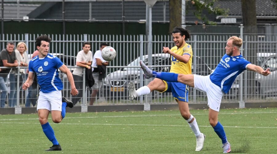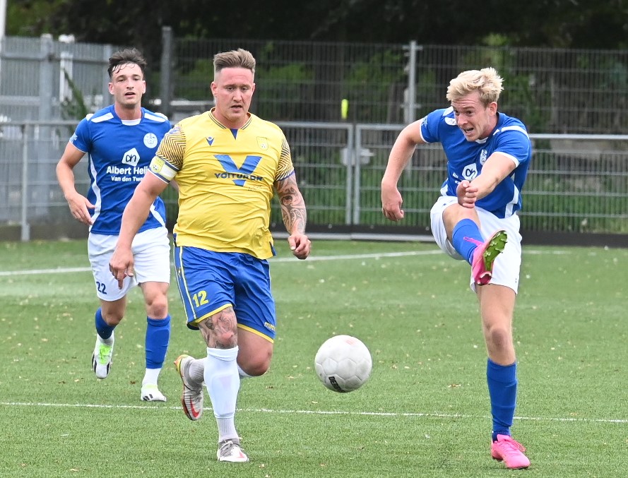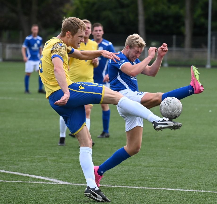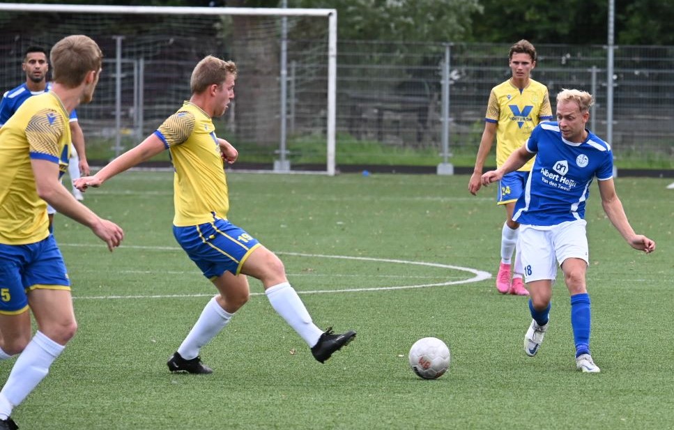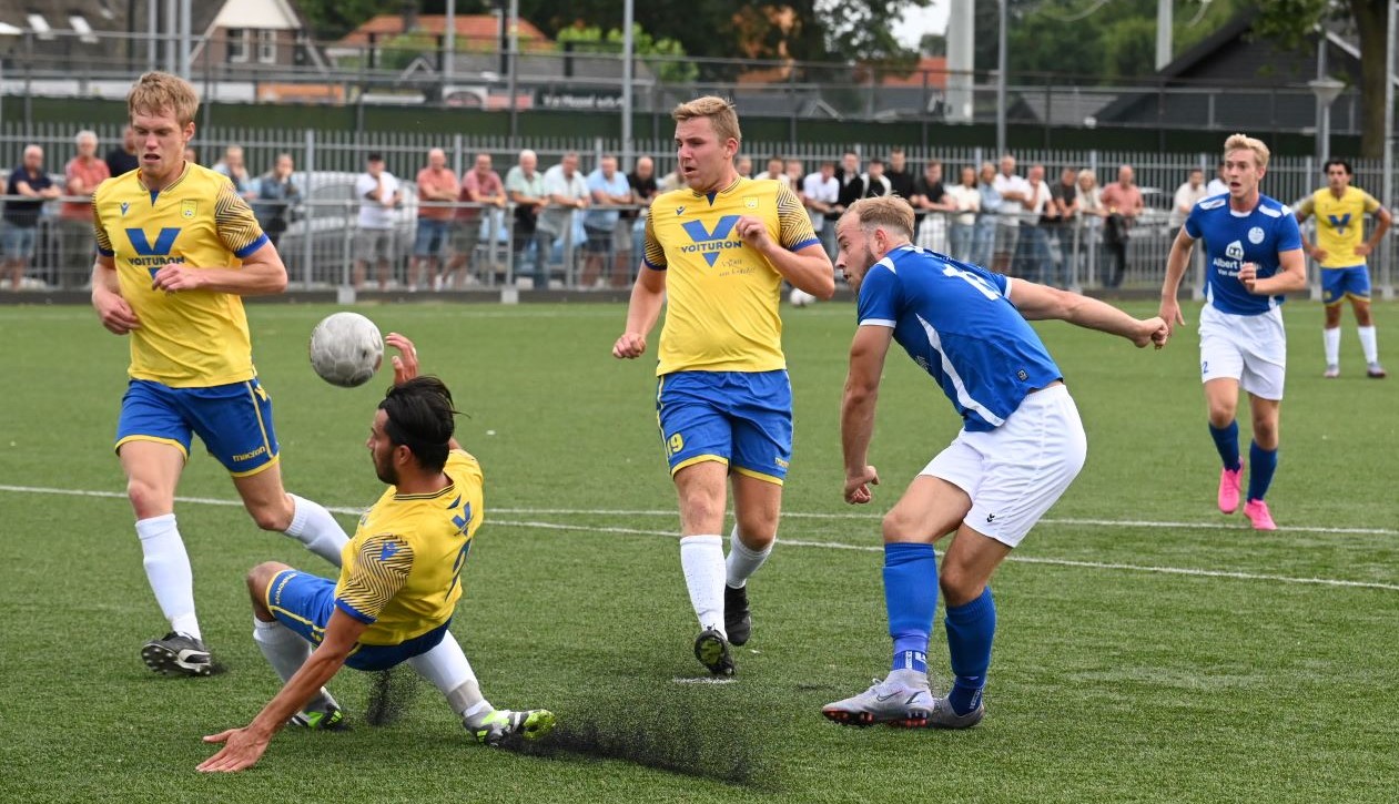 Veensche Boys controleerde de wedstrijd aanvankelijk, maar stuitte op een stugge verdediging van NSC die de bal handig ontfrutselde en ook in de omschakeling redelijk gevaarlijk bleek. Veensche Boys was veel te lief voor NSC, dat pas sinds afgelopen weekeinde aan het trainen is. Pas in de tweede helft ging het gas erop bij de ploeg uit Nijkerkerveen. Toen de neven Rody en Julian Buitenhuis de gelederen kwamen versterken was er geen houden meer aan. Julian Buitenhuis zette bij de eerste goal prachtig voor via de zijkant en spits Corné Parol hoefde slechts het puntje van zijn schoen te gebruiken om de bal in het net te werken. Meteen daarna was er een overtreding op Tom van Donselaar. De pingel werd snoeihard benut door Corné Parol. Daarna was er ook nog een derde goal van Parol via een prachtig crossbal. Een vierde goal had hij ook op zijn pantoffel, maar die ging net voorlangs. Vervolgens werd bij een hoekschop iedereen op het verkeerde been gezet doordat Julian Buitenhuis Dave Knikker dichtbij bediende en haalde verwoestend uit: 4-0. Vervolgens stelde Julian ook nog Tom van Donselaar in staat om zijn goaltje te pikken. In de laatste minuten wist NSC nog iets terug te doen, onder meer via een penalty. Eindstand 5-2. Foto Kees van den Heuvel