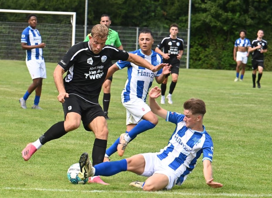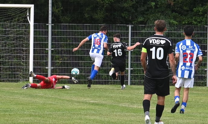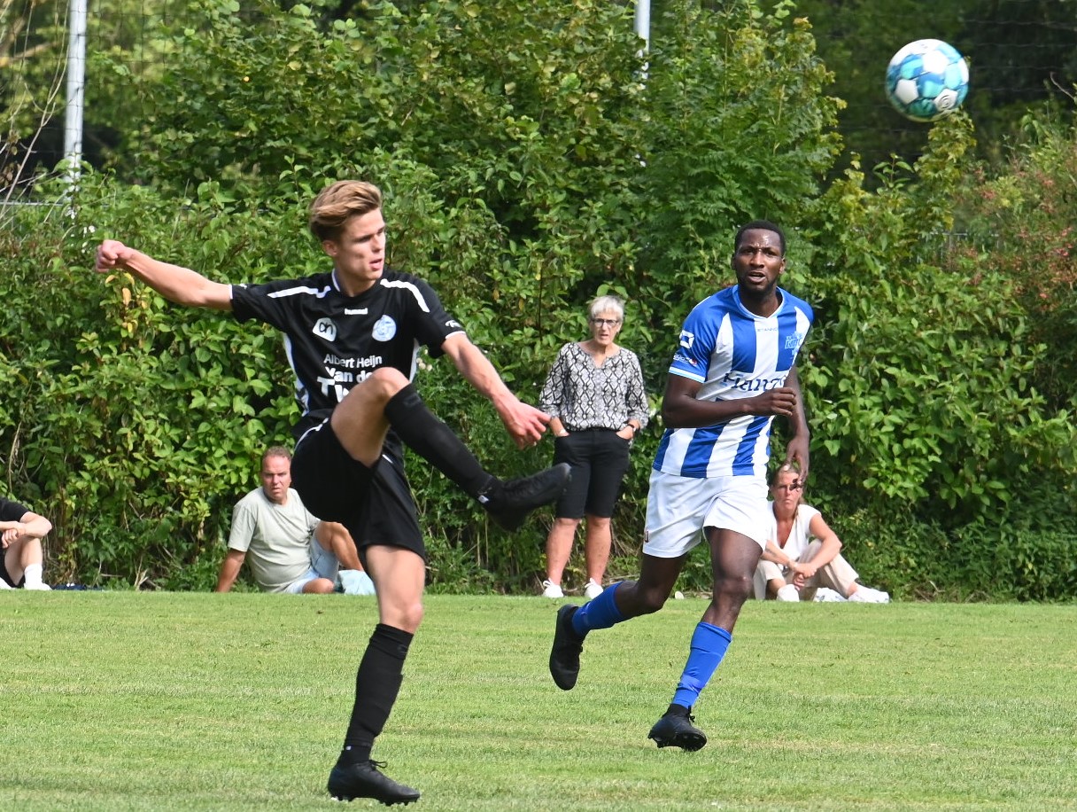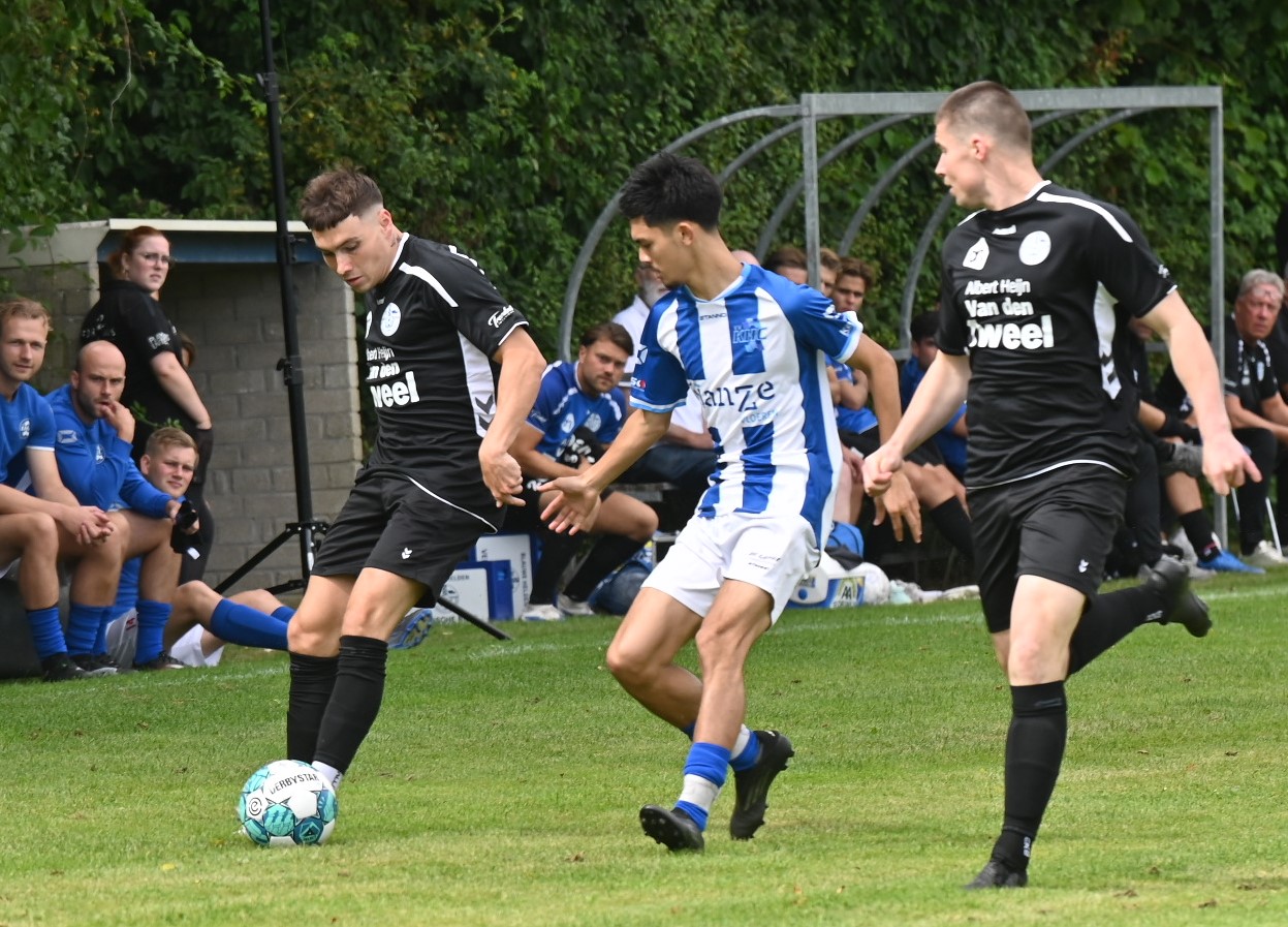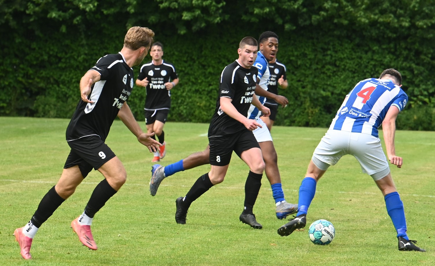 Veensche Boys heeft haar eerste oefenwedstrijd overtuigend gewonnen. Tegen en bij KHC Kampen werd het 0-1. Die werd gemaakt door spits Corné Parol, maar alle credits gingen naar Levi Haringsma die een briljante voorzet gaf. Het enige verwijt dat het team uit Nijkerkerveen kan worden gemaakt is dat er niet veel meer kansen werden verzilverd. De oud vierdedivisionist treft Veensche Boys ook in de competitie. Coach Jeroen Peters: ,,Ik ben heel tevreden. Wat ik vooral goed vond, is dat we de spelers hebben meegegeven om goed vanuit de organisatie te spelen en de rust te bewaren. Alle afspraken zijn nagekomen. We hebben ook vrijwel niets weggegeven. Er was nog een mooie redding van Wessel. En als ik kijk naar de tweede helft, hadden we wellicht wat meer doelpunten kunnen maken. We hebben alle spelers aan het werk gezien en de kop is eraf.’’ Foto en bron Kees van den Heuvel