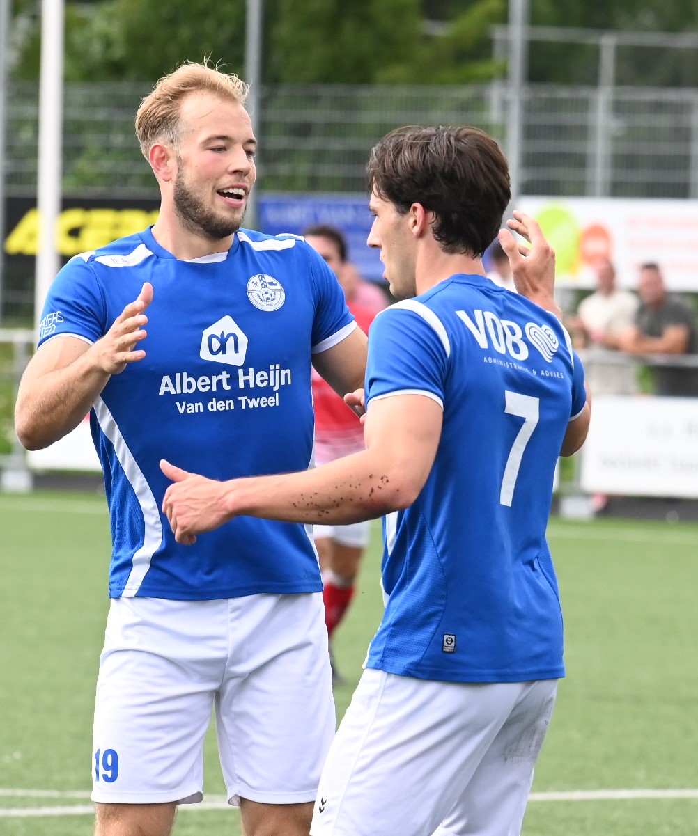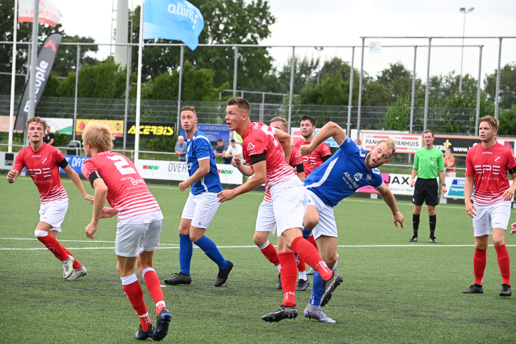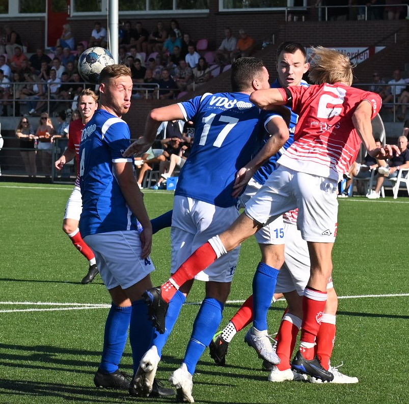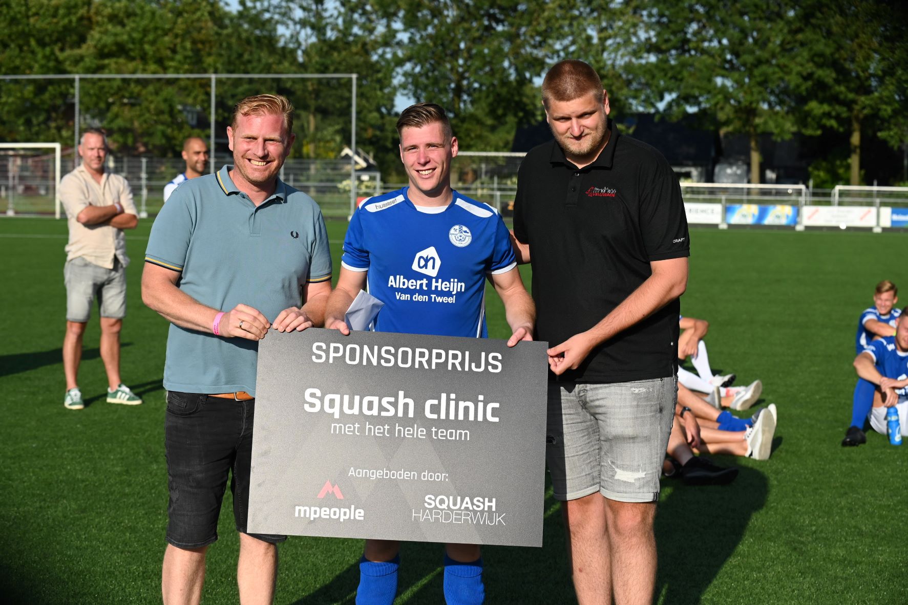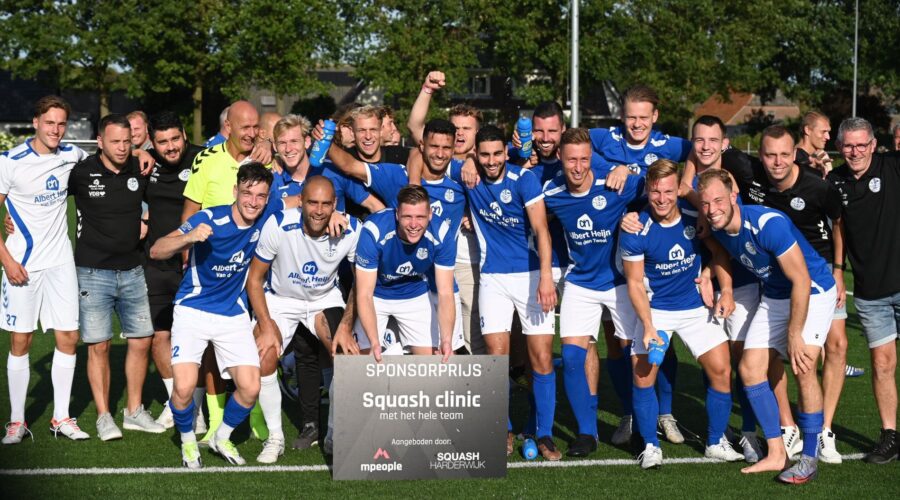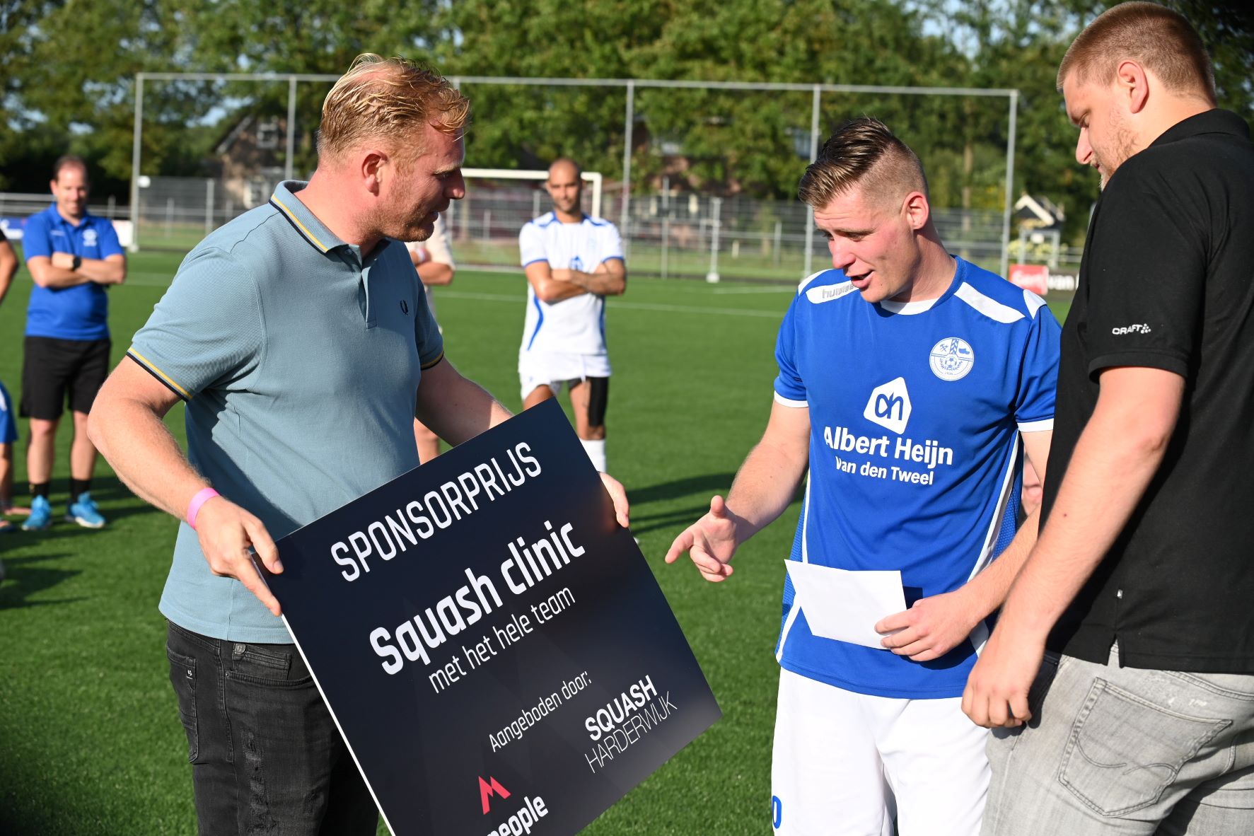 Veensche Boys heeft de eerste hoofdprijs van het seizoen binnen. Het team van coach Erik Assink won zaterdag 19 augustus het Veluwade Toernooi in Hierden. Veensche Boys ontving als hoofdprijs een dagje squashen in Squashcentrum Harderwijk en 500 euro, mede aangeboden door MPeople. Op de slotdag wonnen de Veenders van gastheer Hierden met 3-1. En na de 5-2 tegen NSC was ook de winst op Hierden zeer overtuigend. Veensche Boys startte oppermachtig met twee keer een goal van Corné Parol. In de slotfase wist Hierden iets terug te doen via Casper Crop die Jordy Deckers verschalkte. Net na rust raakte Jan-Jurriën Hop de deklat namens Hierden en Corné Parol deed hetzelfde aan de overkant namens Veensche Boys. Daarna waren er nog tal van kansen voor Tom van Donselaar en Julian Buitenhuis. Uiteindelijk maakte Julian de winnende goal alsnog via een schitterende goal vanaf de rand van het strafschopgebied. Op zijn Juliaans werd het 1-3. Foto Kees van den Heuvel