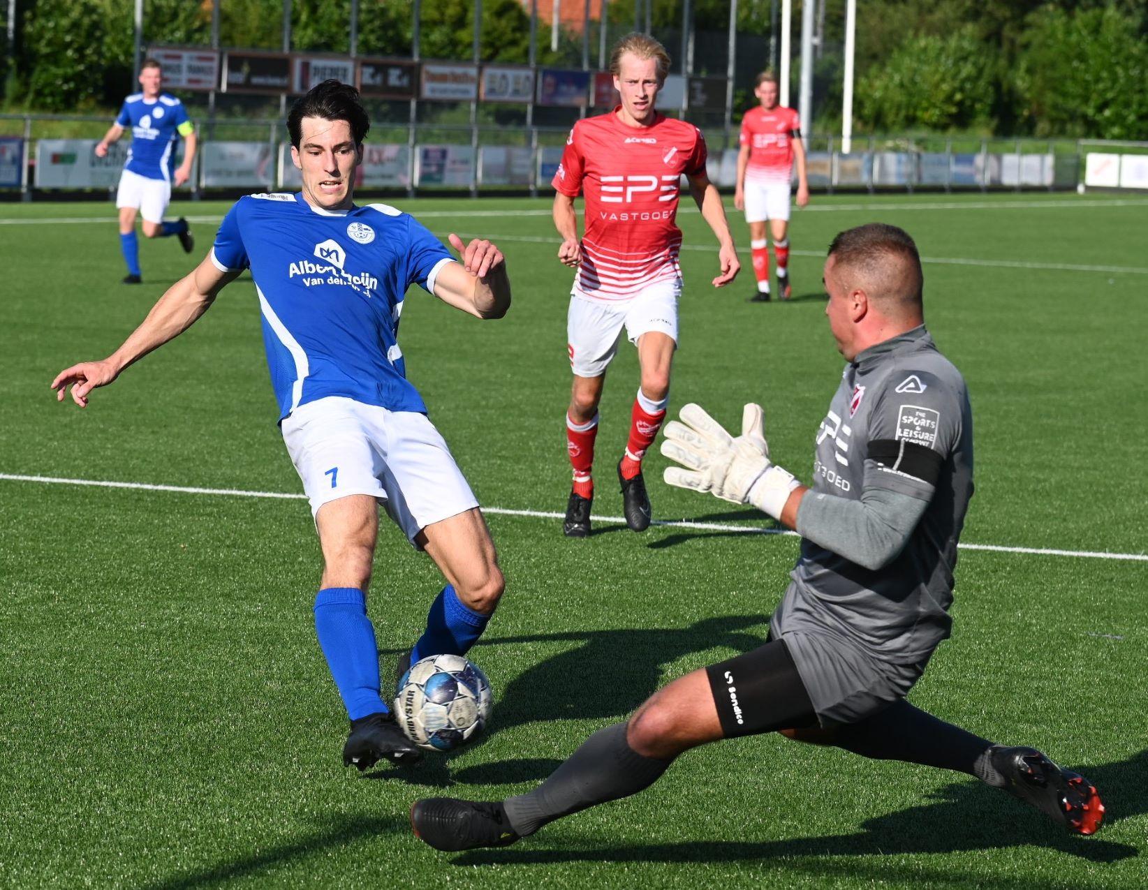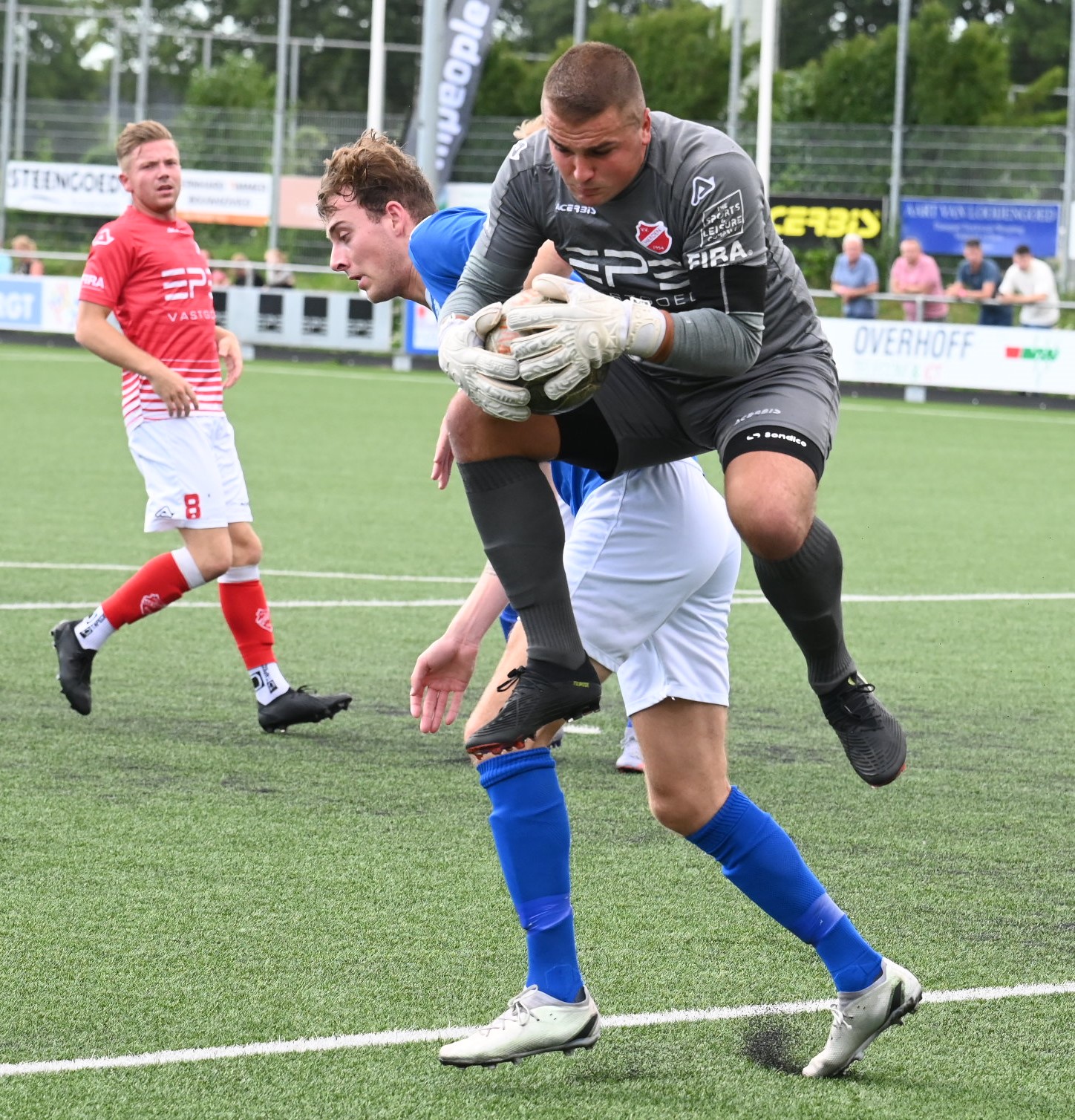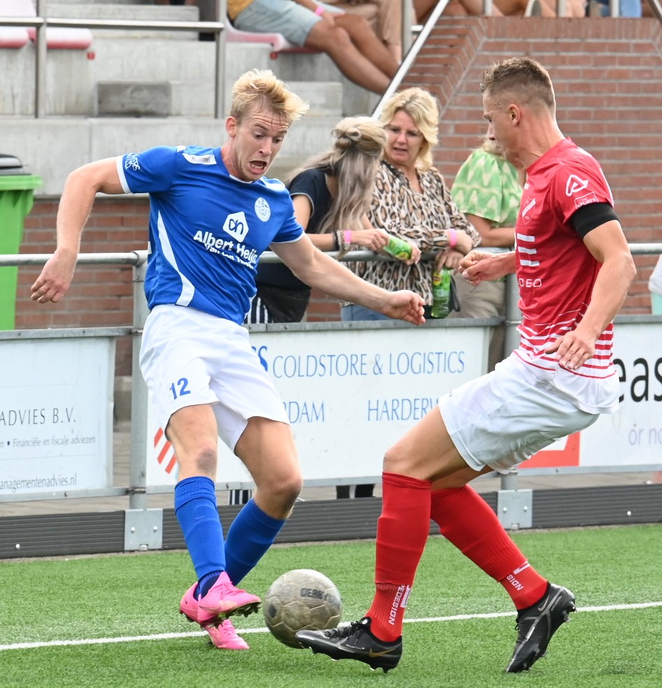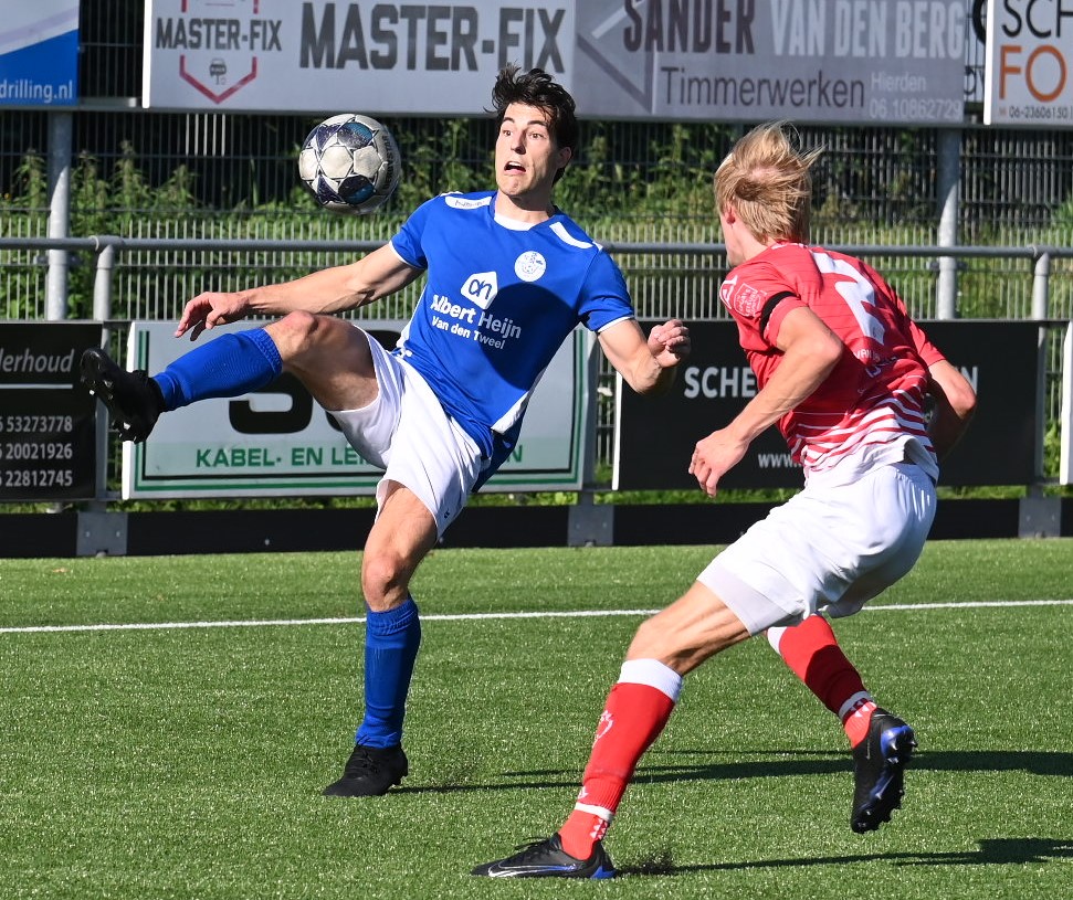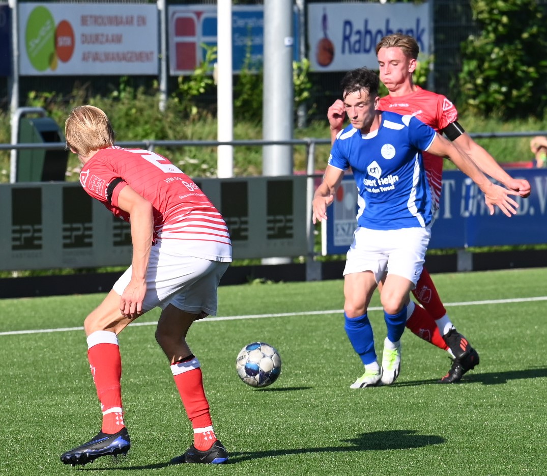 Veensche Boys heeft de eerste hoofdprijs van het seizoen binnen. Het team van coach Erik Assink won zaterdag 19 augustus het Veluwade Toernooi in Hierden. Veensche Boys ontving als hoofdprijs een dagje squashen in Squashcentrum Harderwijk en 500 euro, mede aangeboden door MPeople. Op de slotdag wonnen de Veenders van gastheer Hierden met 3-1. En na de 5-2 tegen NSC was ook de winst op Hierden zeer overtuigend. Veensche Boys startte oppermachtig met twee keer een goal van Corné Parol. In de slotfase wist Hierden iets terug te doen via Casper Crop die Jordy Deckers verschalkte. Net na rust raakte Jan-Jurriën Hop de deklat namens Hierden en Corné Parol deed hetzelfde aan de overkant namens Veensche Boys. Daarna waren er nog tal van kansen voor Tom van Donselaar en Julian Buitenhuis. Uiteindelijk maakte Julian de winnende goal alsnog via een schitterende goal vanaf de rand van het strafschopgebied. Op zijn Juliaans werd het 1-3. Foto Kees van den Heuvel