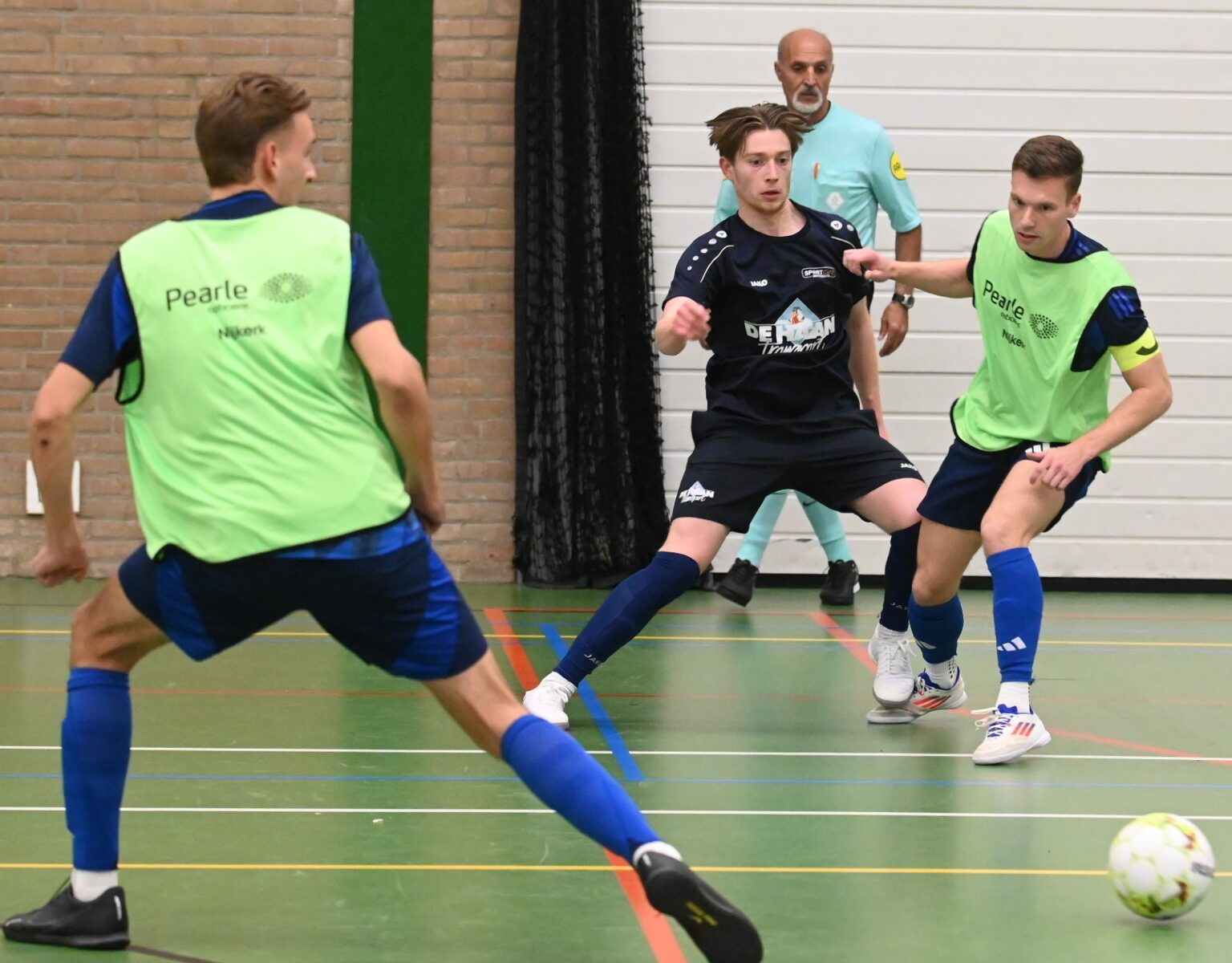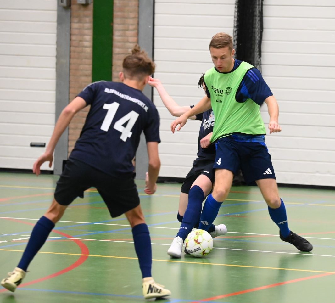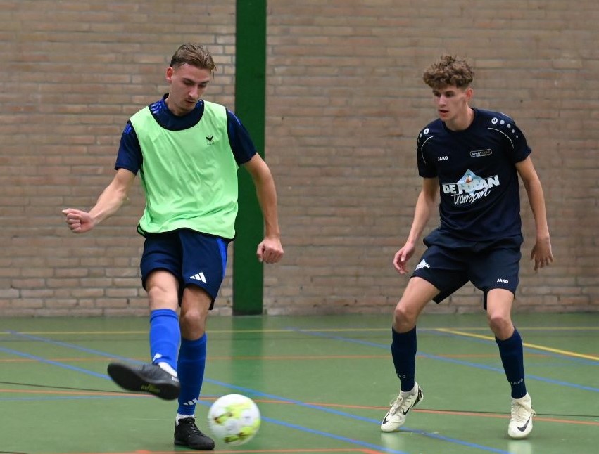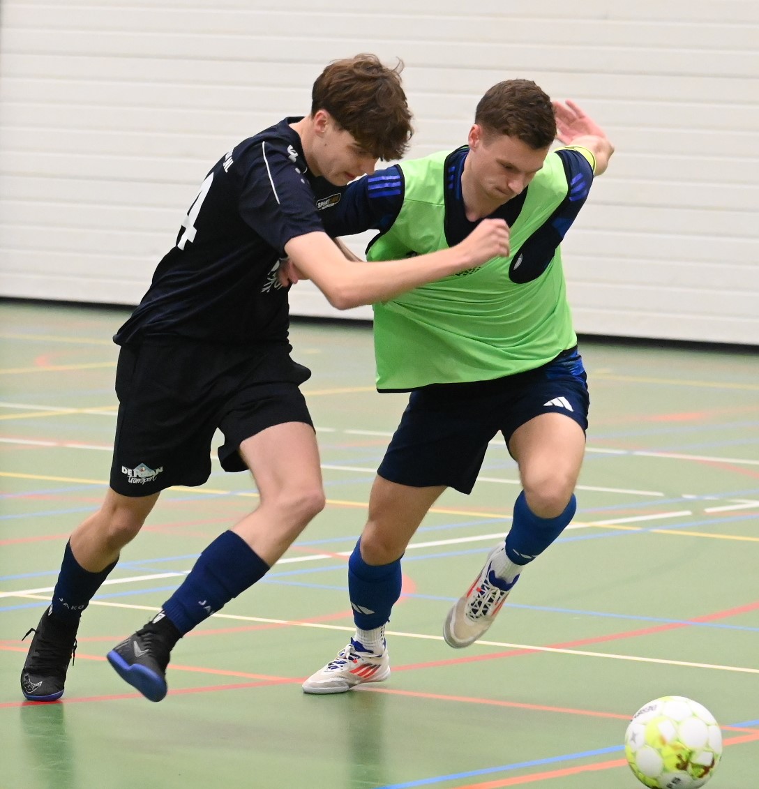 Het eerste team van zaalvoetbalvereniging Veensche Boys heeft de klapper in de hoofdklasse gewonnen van Watergoor. In het Nijkerkse treffen trokken de Blauwe Helden aan het langste eind. Het werd 0-1 in het voordeel van Veensche Boys. Die enige treffer werd gemaakt door Niek van Diermen. Dat werd uiteraard uitgebreid gevierd in sportcafé Watergoor. Foto Kees van den Heuvel