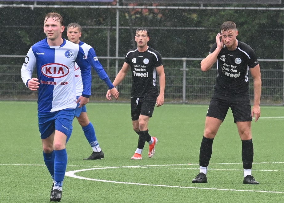 Aanvankelijk liep het nog niet crescendo voor Veensche Boys op het regenachtige complex van DTS. De kansen waren sporadisch en de beleving leek een beetje te ontbreken. De Edenaren leken op voorsprong te komen, maar een kopbal van Joël van Wijk waaruit de goal volgde, werd geannuleerd vanwege duwen. Veensche Boys kroop uit haar schulp en voetbalde steeds overtuigender: dat resulteerde in een goal van spits Corné Parol die de bal er na een prachtige voorzet inschoof. Vervolgens was het Veensche Boys dat onder aanvoering van Alwin van Domselaar de klok sloeg. Het gebeurt vrij zelden dat hij de aanvoerdersband draagt, maar het leek hem wel vleugels te geven. Even na rust werd de tweede gemaakt namens Veensche Boys. Op voorzet van Tom van Donselaar schoot Jurre van den Brom raak. Later was er ook nog een goal van wederom Corne Parol in de nok van het doelgebied, maar deze werd afgekeurd wegens buitenspel. In de slotfase was er vervolgens nog een goal voor DTS, een wippertje van Jarvin de Haan over de wederom goed acterende keeper Wessel Bosman heen. En daar bleef het ook bij. Foto en bron Kees van den Heuvel