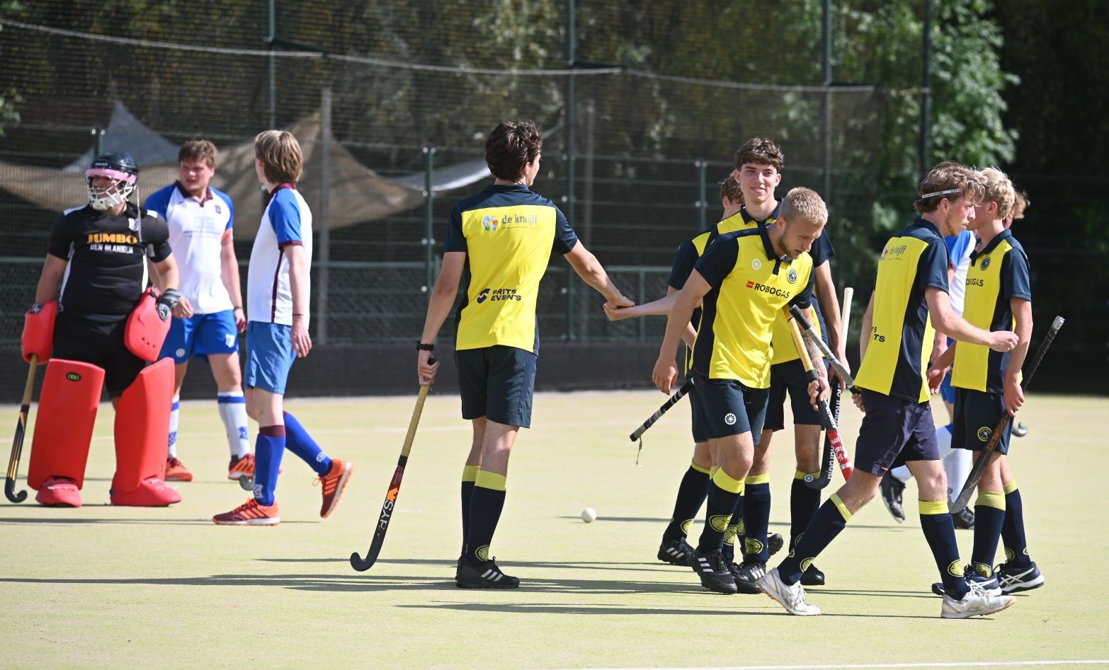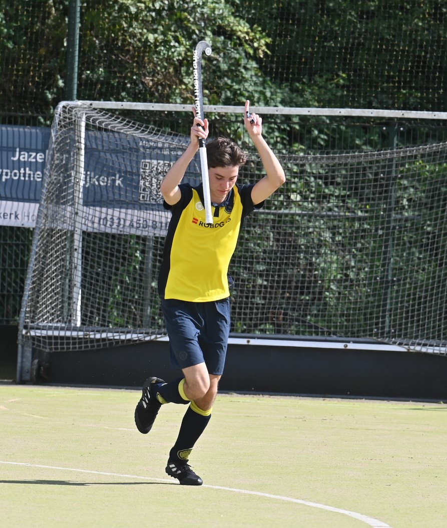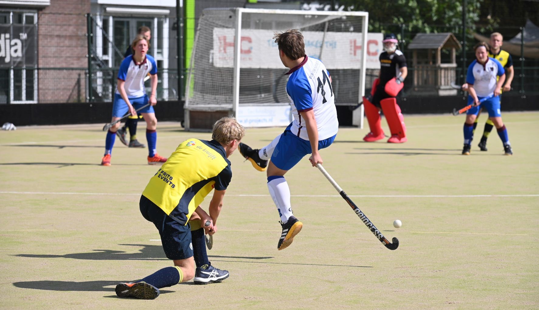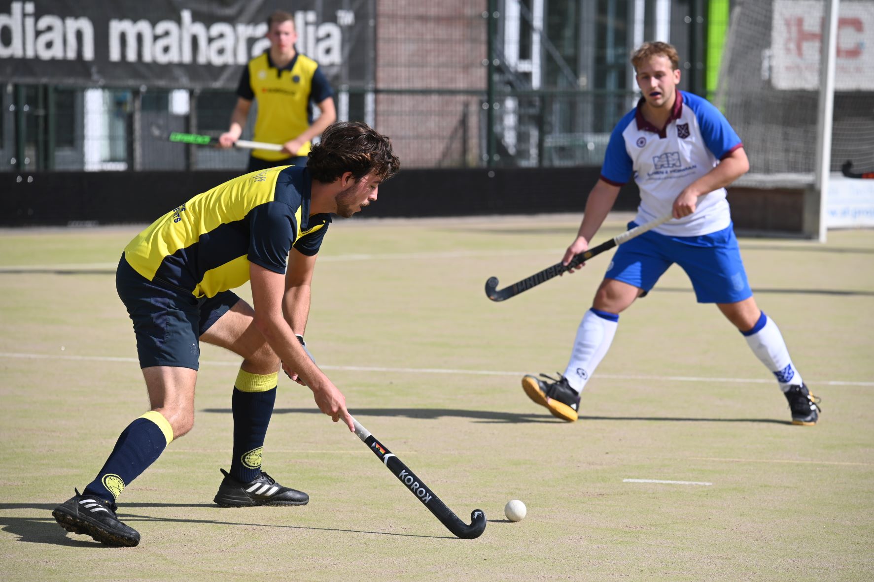 De eerste klap is een daalder waard. Verpletterend was de eerste wedstrijd van de hockeyheren onder de 25. De Nijkerkers wisten op supersunday 14 september een veelbetekende nederlaag toe te brengen tegen Baarn. Het werd in Nijkerk liefst 13-0. Een handicap voor de mannen uit Baarn bleek dat zij geen wisselspelers hadden. Ook bij de heren 1 van Hockeyclub Nijkerk, die wonnen in de laatste minuut van Ijsseloever met 3-2. Foto Kees van den Heuvel