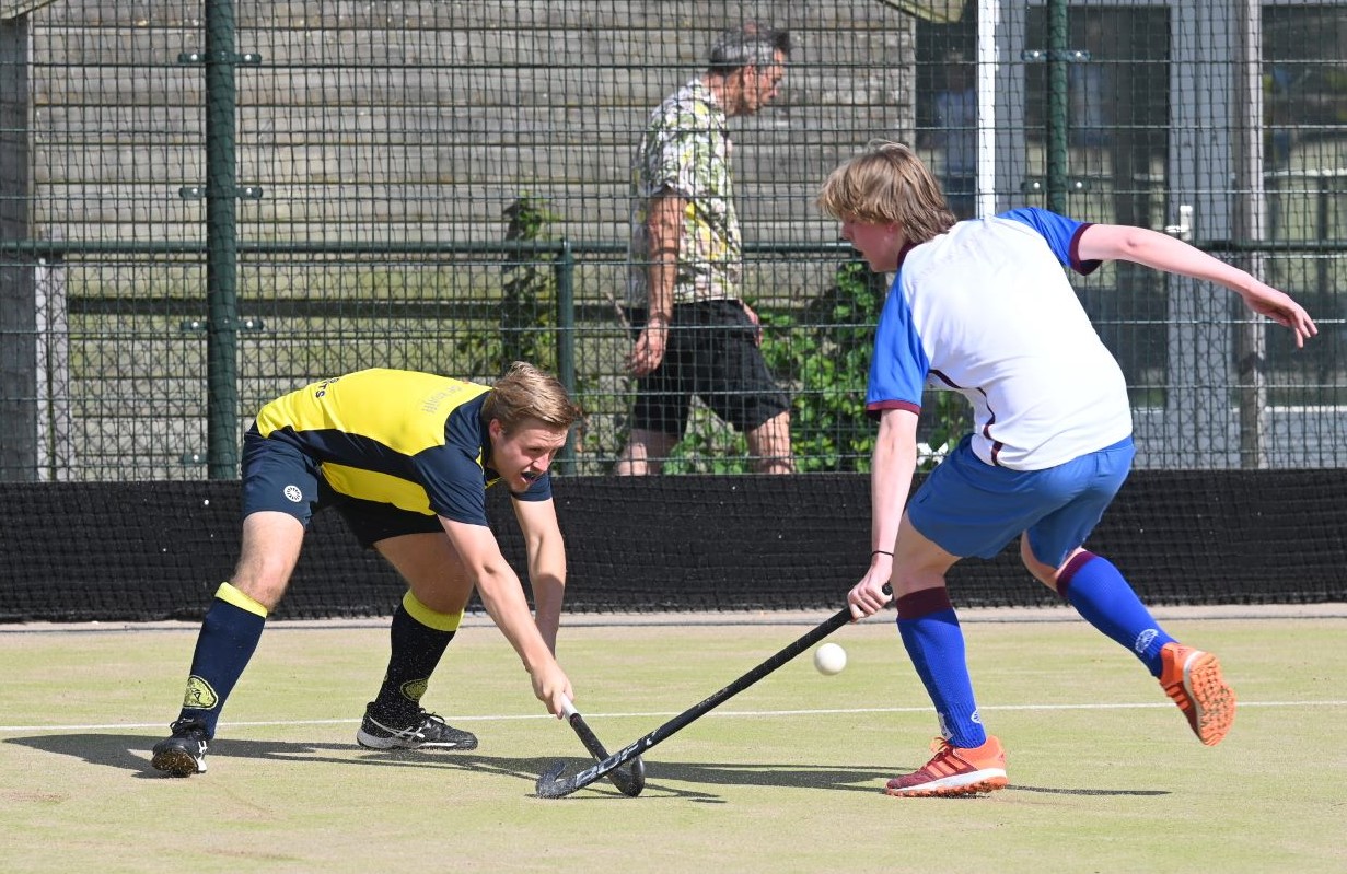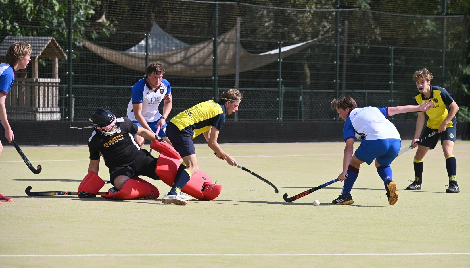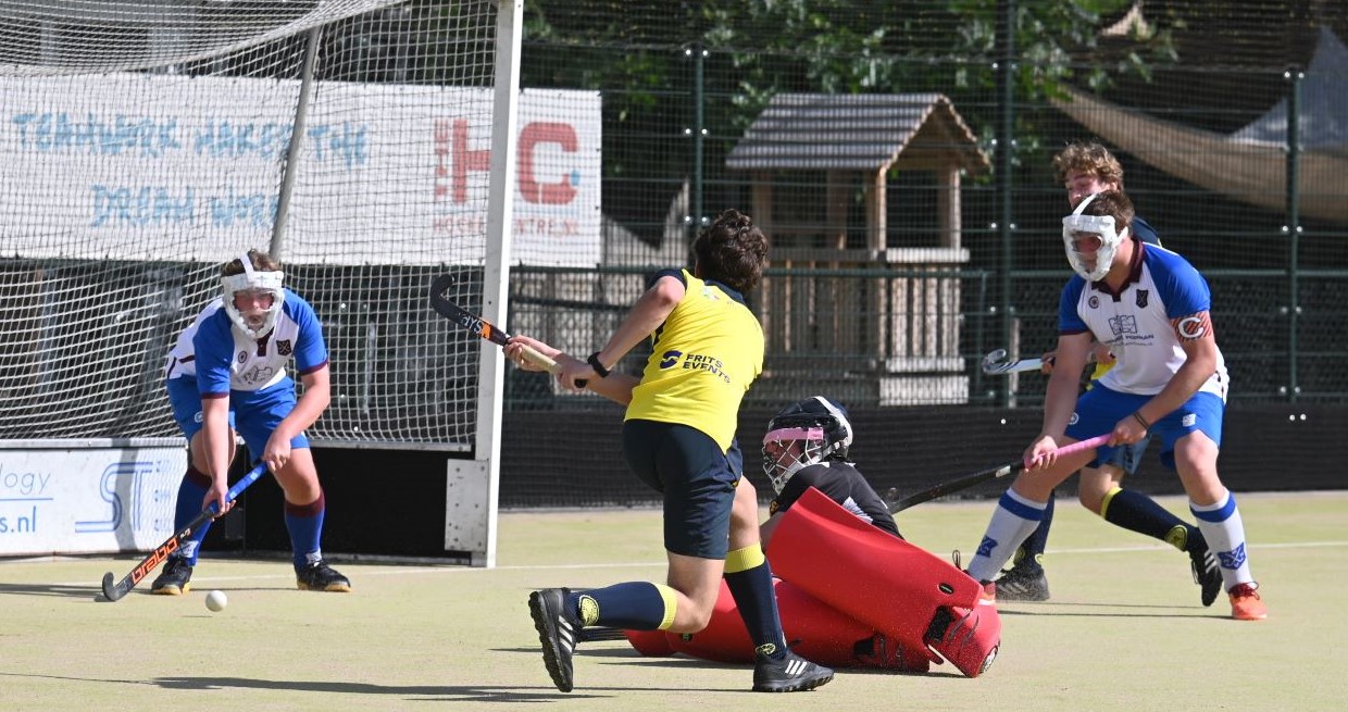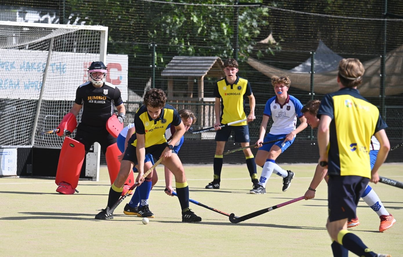 De eerste klap is een daalder waard. Verpletterend was de eerste wedstrijd van de hockeyheren onder de 25. De Nijkerkers wisten op supersunday 14 september een veelbetekende nederlaag toe te brengen tegen Baarn. Het werd in Nijkerk liefst 13-0. Een handicap voor de mannen uit Baarn bleek dat zij geen wisselspelers hadden. Ook bij de heren 1 van Hockeyclub Nijkerk, die wonnen in de laatste minuut van Ijsseloever met 3-2. Foto Kees van den Heuvel