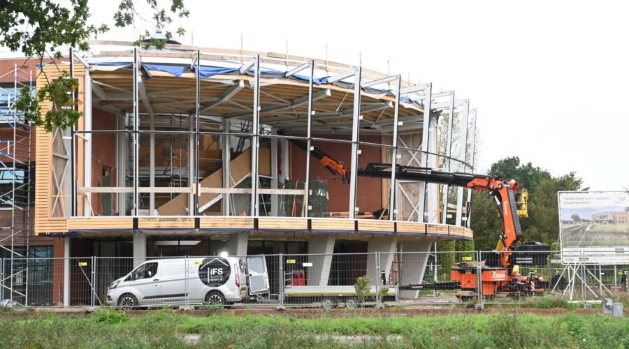 De gemeente Nijkerk meldt enige vertraging in de bouwplanning van het nieuwe gemeentehuis op de Van ’t Hoffstraat. De aannemer heeft aangegeven de eerder opgeven planning niet stand te kunnen houden. De oorzaak hiervan ligt in het feit dat in de afgelopen periode verborgen gebreken op het gebied van brandwerendheid en brandcompartimentering naar boven zijn gekomen. Deze komen nu tijdens het (ver-)bouwproces pas naar voren en waren ook niet eerder te traceren. Het onderzoek naar de te nemen maatregelen en de hieraan verbonden kosten is inmiddels gestart. Dit resulteert op dit moment dat de oplevering opschuift van februari 2024 naar mei 2024 en de ingebruikname rond juli-augustus 2024 zal zijn. Door de vertraging wordt vooralsnog geen overschrijding van de kosten voorzien. Overigens heeft de gemeente Nijkerk op 18 september een aanvraag ingediend voor een DUMAVA-subsidie (duurzaam maatschappelijk vastgoed) voor een bedrag van circa € 170.000,–. Foto Kees van den Heuvel