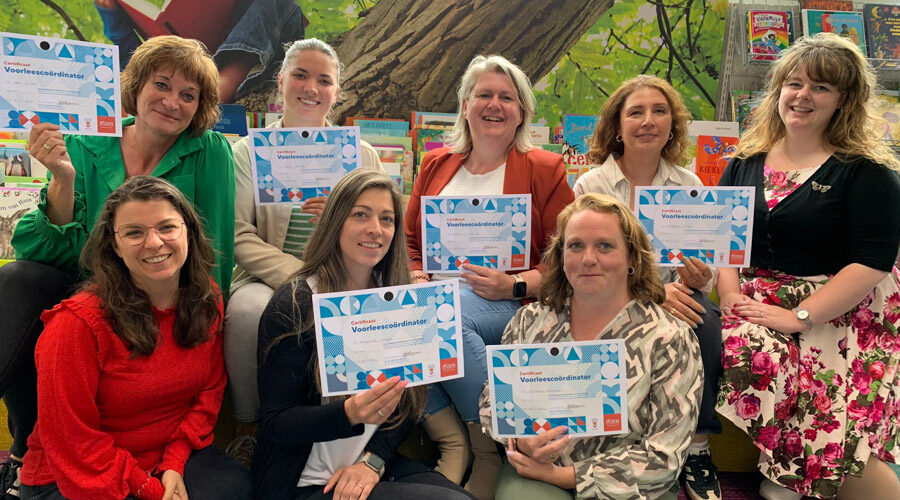 Op woensdag 29 mei hebben 7 pedagogisch medewerkers van Stichting PCOGV de cursus tot voorleescoördinator afgerond in Bibliotheek Nijkerk. De cursus werd gegeven door 2 gecertificeerde medewerkers van de Bibliotheek. Op 5 kindcentra van deze stichting zijn nu gecertificeerde voorleescoördinatoren, die in samenwerking met de bibliotheek zich richten op voorlezen.