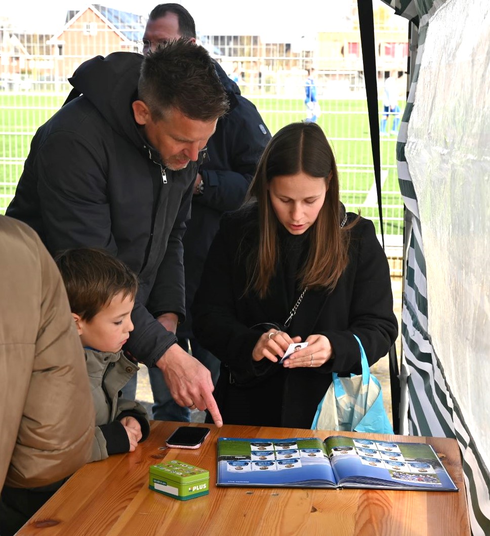 De ‘oude bestuurskamer’ van Veensche Boys kleurde afgelopen zaterdag 28 maart blauw tijdens de drukbezochte voetbalplaatjes-ruilmiddag. Tientallen fanatieke verzamelaars kwamen bijeen om hun Albert Heijn Van den Tweel-album eindelijk compleet te maken. Dit gebeurde in aanwezigheid van de AH-hamster. Met een flinke dosis ruilbereidheid keerden velen met een vol boek huiswaarts. Al ruim voor de starttijd van 13.00 uur stonden de eerste verzamelaars met hun stapels dubbelen te trappelen. Vanwege de verwachte drukte was er uitgeweken naar de oude bestuurskamer, een besluit dat achteraf meer dan terecht bleek. Jong en oud vonden elkaar aan de ruiltafels: van pupillen die op zoek waren naar hun eigen plaatje tot opa’s en oma’s die de laatste ontbrekende teamgenoten voor hun kleinkinderen probeerden te bemachtigen. De sfeer zat er goed in, mede door de aanwezigheid van de beroemde Albert Heijn-hamster. De mascotte was een populaire verschijning en deelde namens de Poffertjesman speciale snoepzakjes in de vorm van bloemen uit. Dit zorgde voor de nodige energie tijdens het intensieve speurwerk naar de juiste nummers.