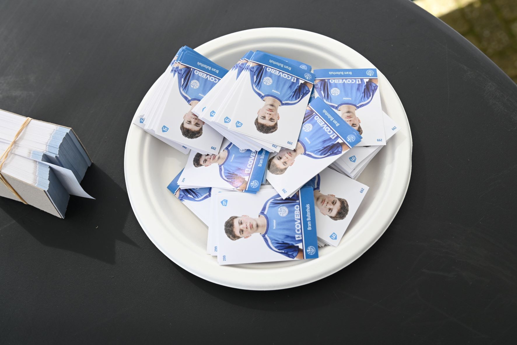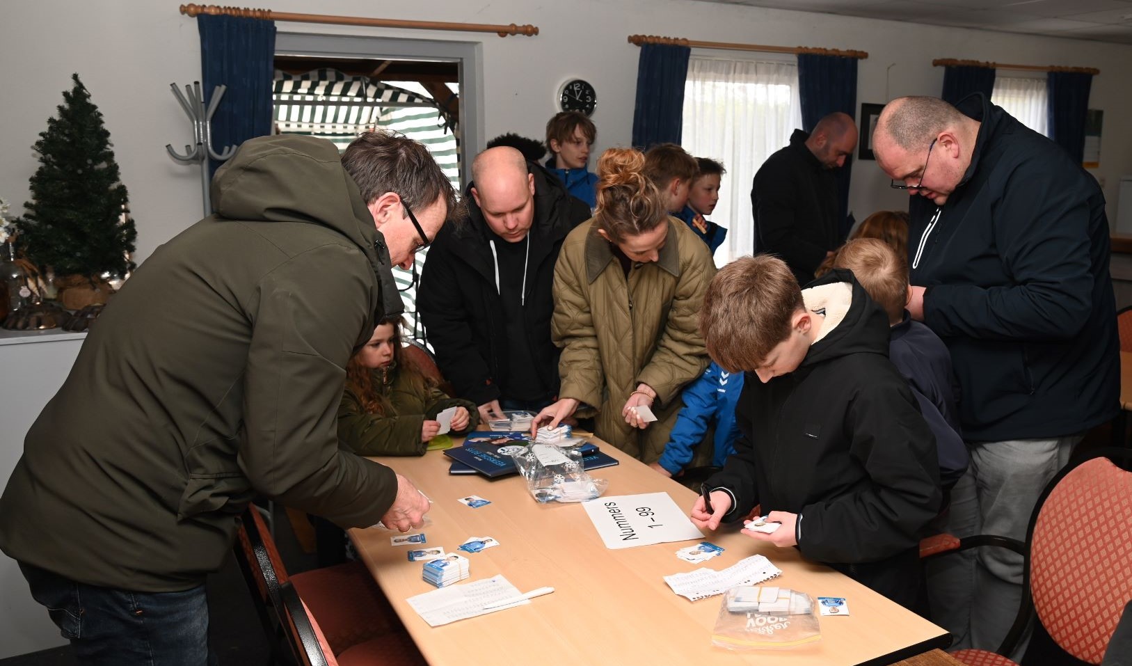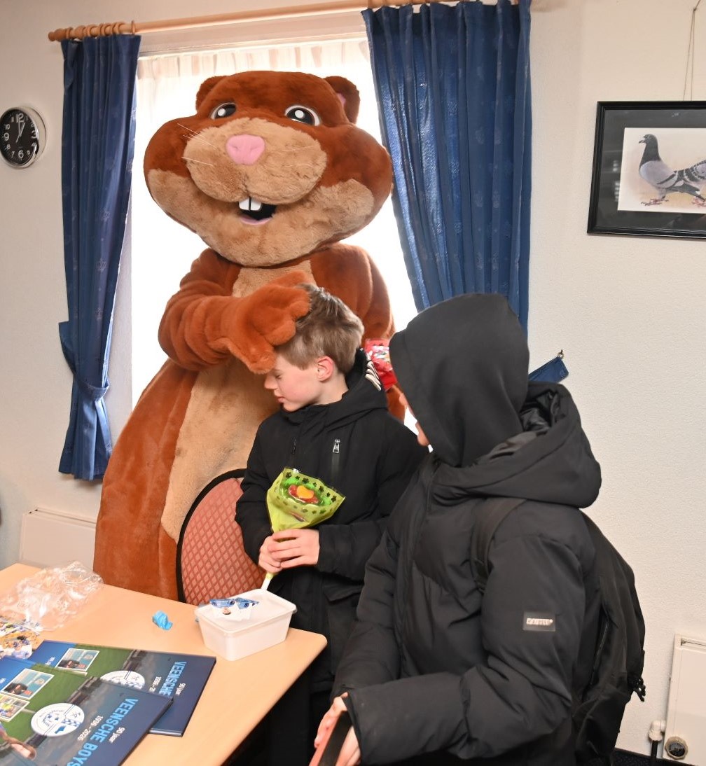 De ‘oude bestuurskamer’ van Veensche Boys kleurde afgelopen zaterdag 28 maart blauw tijdens de drukbezochte voetbalplaatjes-ruilmiddag. Tientallen fanatieke verzamelaars kwamen bijeen om hun Albert Heijn Van den Tweel-album eindelijk compleet te maken. Dit gebeurde in aanwezigheid van de AH-hamster. Met een flinke dosis ruilbereidheid keerden velen met een vol boek huiswaarts. Al ruim voor de starttijd van 13.00 uur stonden de eerste verzamelaars met hun stapels dubbelen te trappelen. Vanwege de verwachte drukte was er uitgeweken naar de oude bestuurskamer, een besluit dat achteraf meer dan terecht bleek. Jong en oud vonden elkaar aan de ruiltafels: van pupillen die op zoek waren naar hun eigen plaatje tot opa’s en oma’s die de laatste ontbrekende teamgenoten voor hun kleinkinderen probeerden te bemachtigen. De sfeer zat er goed in, mede door de aanwezigheid van de beroemde Albert Heijn-hamster. De mascotte was een populaire verschijning en deelde namens de Poffertjesman speciale snoepzakjes in de vorm van bloemen uit. Dit zorgde voor de nodige energie tijdens het intensieve speurwerk naar de juiste nummers.