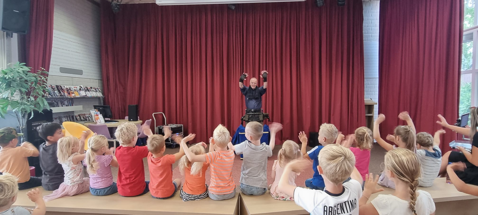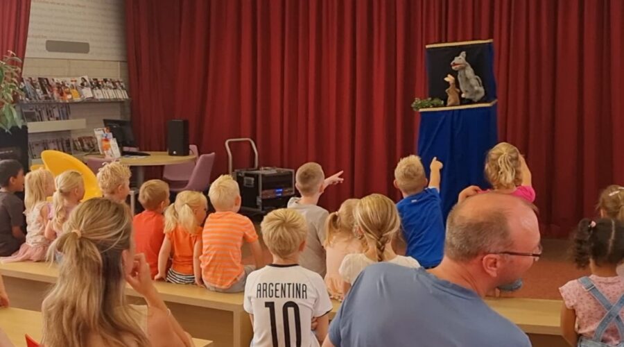 De bibliotheek van Nijkerk zat vrijdag 14 juli helemaal vol voor een poppenkastvoorstelling. Die werd verzorgd door Poppentheater Cassiopeia die de voorstelling ‘De sterkste? Dat ben ik!’ op de buhne bracht. Op een hele andere manier werd het verhaal verteld van Roodkapje en de Grote Boze Wolf (maar dan anders).