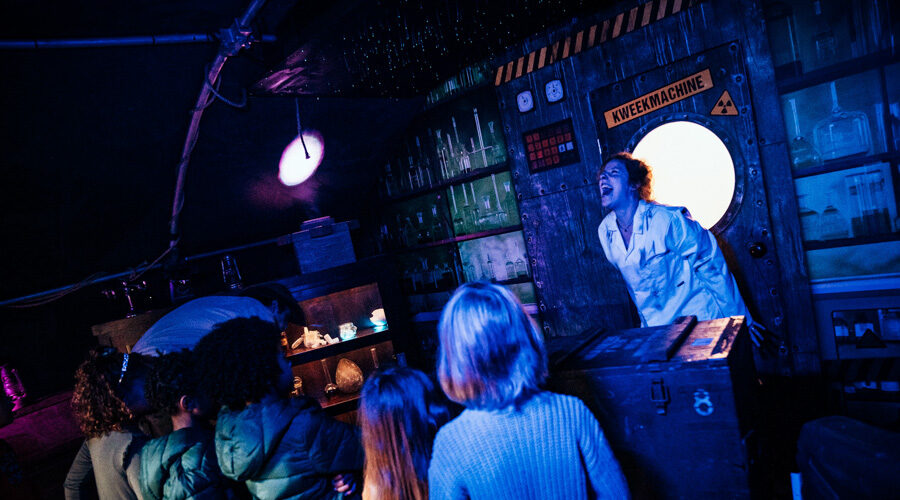 Het avontuur begint in een verwoest landschap, waar bezoekers hindernissen moeten overwinnen en echte Dinorangers ontmoeten. “Daarna gaan ze al survivallend naar de dinobroedplaats, waar de avonturiers zelfs de dino-eieren kunnen bewonderen, waarvan sommige al zijn uitgekomen”, vertelt Hylke. Maar dan blijkt dat één van de dinojongen spoorloos is verdwenen. Het vermiste dinojong is ontvoerd door een kwaadaardige, gestoorde professor. In zijn lab, diep verscholen in het Dinobos, heeft hij een kweekmachine staan waarmee hij dino-eieren laat uitkomen en dinosaurussen nog veel gevaarlijker en groter maakt. “De professor wil dino’s verkopen om heel veel geld te verdienen. Eén dino is per ongeluk te ver doorgefokt en heel gevaarlijk geworden”, voegt Hylke enthousiast toe. Aan de bezoekers de belangrijke taak om het dinojong op te sporen en de gevaarlijke professor te ontmaskeren.