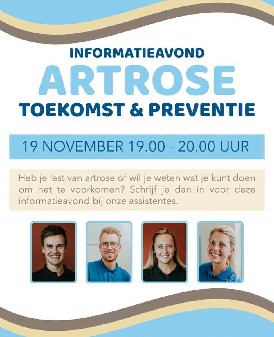 Op 19 november organiseert Fysiotherapie Corlaer een voorlichtingsavond over artrose Tijdens deze avond krijgt u praktische informatie over artrose, wat de risicofactoren zijn en hoe je hier mee om kan gaan. De bijeenkomst is bedoeld voor iedereen die meer wil weten over preventie, behandeling en gezond bewegen bij artrose. Locatie: Henri Nouwenstraat 18, 3863 HV Nijkerk. Aanvang 19:00 uur, deelname is gratis. Aanmelden of meer informatie kan bij de assistentes: 0337210444 of info@fysio-corlaer.nl