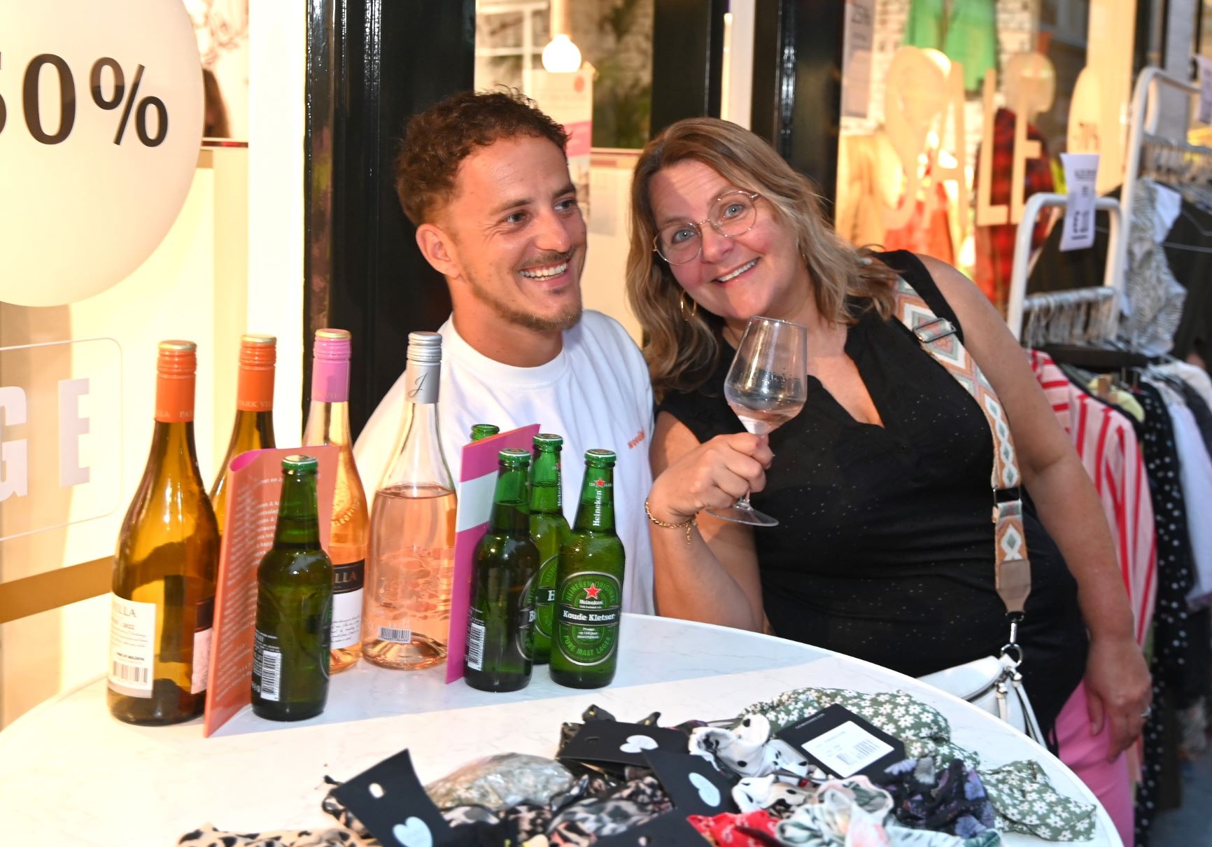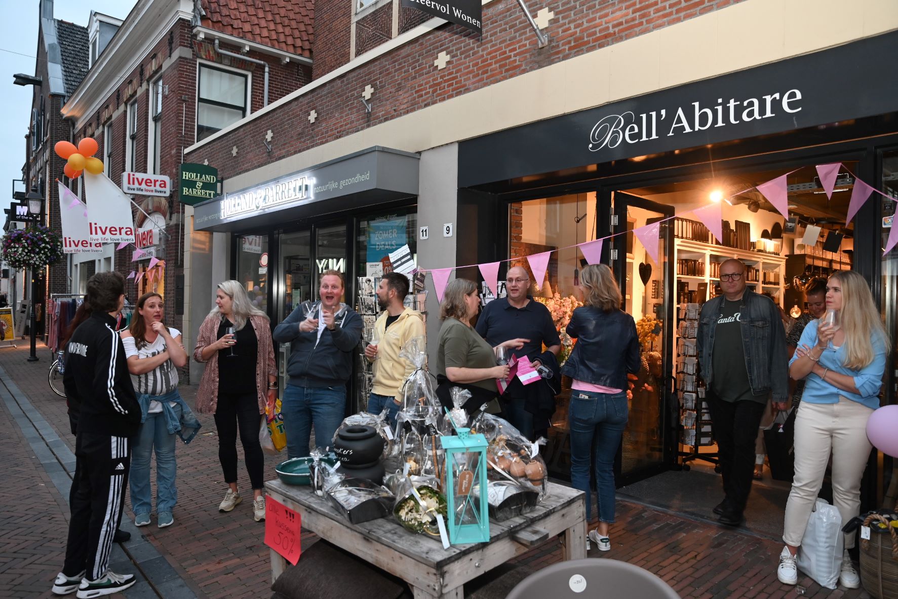 Tijdens de Nacht van Nijkerk was er helaas geen braderie maar dat gemis werd ruimschoots gecompenseerd door het Voorproefje. Welgeteld 202 mensen hebben deelgenomen aan de activiteit van Proef de Passie. Dat hadden er ook niet veel meer moeten zijn, want er waren slechts 204 glazen met inscriptie beschikbaar. Diverse winkeliers stelden hun winkel open voor een hapje en drankje. Verder liepen twee kolderieke typetjes rond door de winkelstraten: Flower Power Paula en Pink Lady. Zij waren ingehuurd om iedereen te laten lachen tijdens het shoppen en proeven. Foto Kees van den Heuvel
