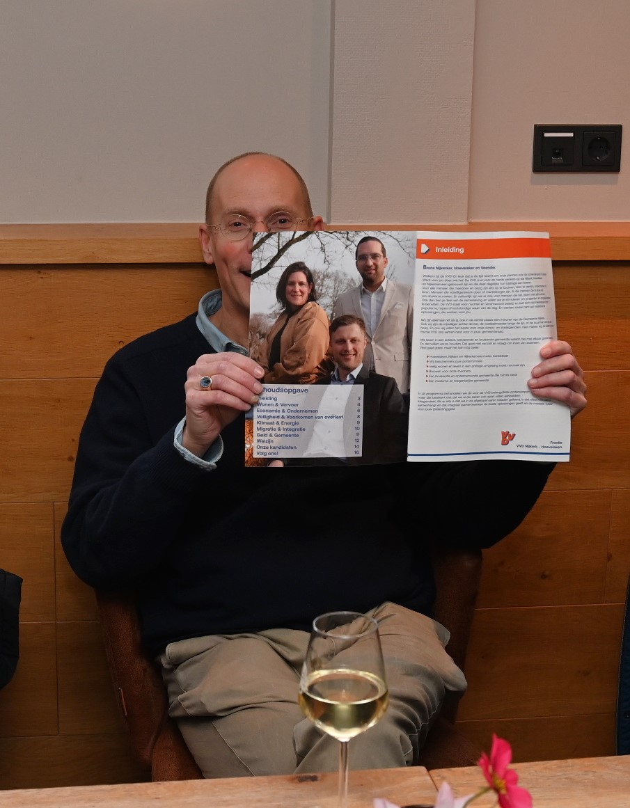 Op de kieslijst van VVD Nijkerk-Hoevelaken staan inwoners van de gemeente met een grote maatschappelijke bijdrage. Het zijn ondernemers, vrijwilligers, opa’s, moeders, organisatoren van evenementen, het zijn mensen die tegenkomt in de winkel, bij de sportclub, op de markt en bovenal zijn het mensen die de gemeente Nijkerk nog mooier willen maken. Een kandidaat-wethouder is in gedachten, maar een naam wordt nog niet prijsgegeven. Het verkiezingsprogramma is te bereiken via nijkerk.vvd.nl