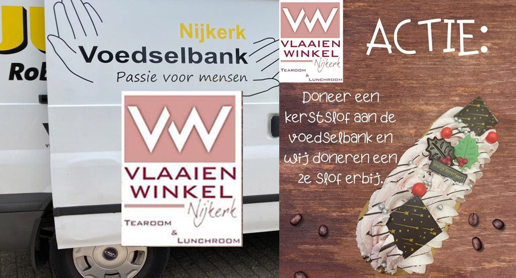 VW Vlaaienwinkel, gevestigd op het Singel in Nijkerk, is een actie begonnen voor de Nijkerkse Voedselbank. Klanten moeten een kerstslof kopen voor de voedselbank en VW Vlaaienwinkel doneert één van hetzelfde soort cadeau aan de Voedselbank. Dus eigenlijk 2 voor de prijs van 1. Richard Velzing die hoopt op een mooie kerst voor de klanten van de voedselbank. Foto Kees van den Heuvel