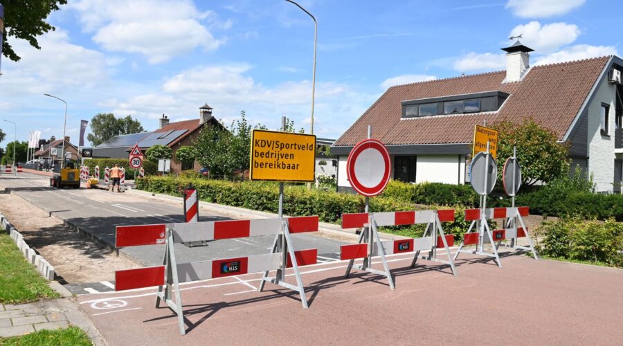 De Watergoorweg in Nijkerk ter hoogte van sporthal Watergoor is de gehele week afgesloten. Dit baanvak wordt opnieuw geasfalteerd. Maandag 14 augustus zijn de klinkers van het bestaande fietspad verwijderd, dinsdag wordt er gefreesd en aan het einde van de week wordt alles voorzien van een nieuwe laag asfalt. De sportvelden zijn bereikbaar. Als gevolg van de werkzaamheden ging het summer experience festijn bij jongerencentrum Chill Out niet door. Foto Kees van den Heuvel