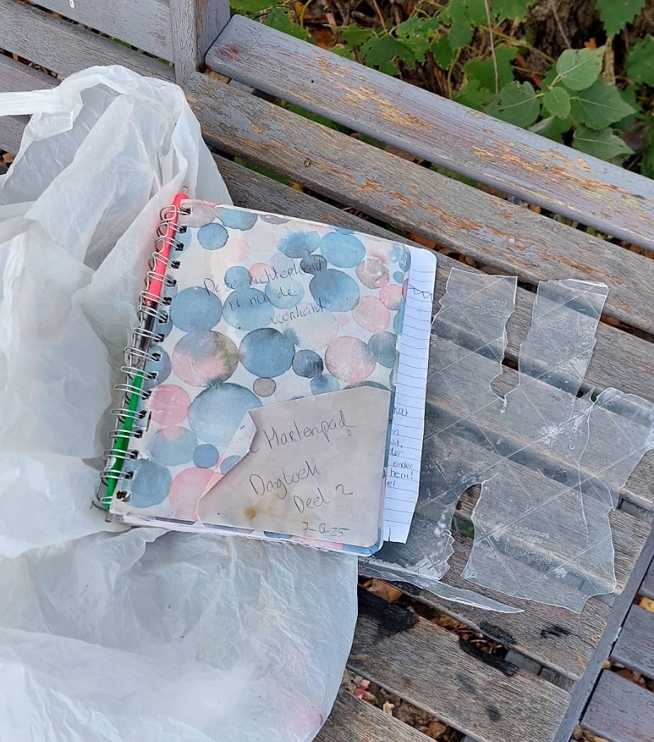 Er zijn opnieuw vernielingen gepleegd bij het Van Hartenbankje. Dat is het bankje bij het Van Hartenpad achter het complex van NSC Nijkerk, waarop een dagboek ligt. Het dagboek is al eerder vernield. Buurtbewoner Anja de Greef is initiatiefnemer van het dagboek: ,,Ik kan zo slecht tegen vandalisme. Het dagboek ligt nu thuis bij mij en blijft daar tot het voorjaar. Nu gaan er met de slechtere weersomstandigheden toch minder mensen zitten, denk ik.” Ze heeft overigens tijdens het opruimen een docent van Aeres VMBO gesproken en vroeg hem of hij dit onder de aandacht wil brengen op school. Het dagboek ligt er sinds deze zomer. tekst Kees van den Heuvel