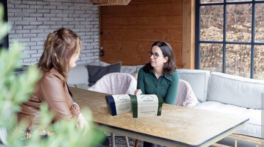 Daarnaast is er ook een schatkist bij overlijden. Deze kan gebruikt worden in plaats van een condoleance boek. Jaren geleden heeft ze dit voor zichzelf uitgewerkt omdat ze nog “kleine kinderen” had toen ze zelf de diagnose slokdarmkanker kreeg. Nu gelooft ze dat dit ook waardevol voor anderen kan zijn als het moment van overlijden daar is. Een schatkist voor nabestaanden waarin dierbare herinneringen, voorwerpen, sieraden een plekje krijgen zodat de herinneringen levend blijven ondanks het sterven.