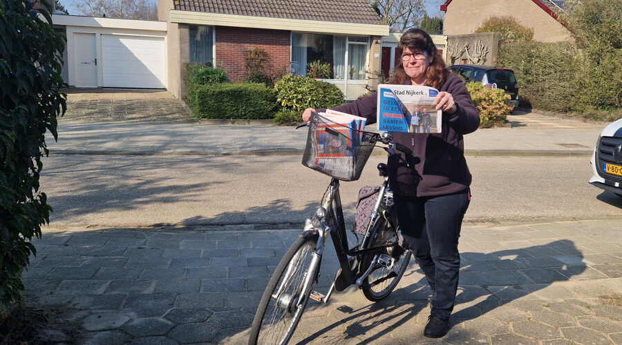 Het is vaste prik: zodra op woensdagmiddag De Stad Nijkerk wordt bezorgd, loopt Lida Naber naar buiten om de bezorgster persoonlijk te bedanken. Die bezorgster, Gea Zwarts (56), stopt na veertien jaar. Ze begon samen met haar zus en later haar dochters, die met het verdiende geld hun rijbewijs konden halen. Elke week vouwden ze folders, stapten op de fiets en deden er zo’n twee uur over.