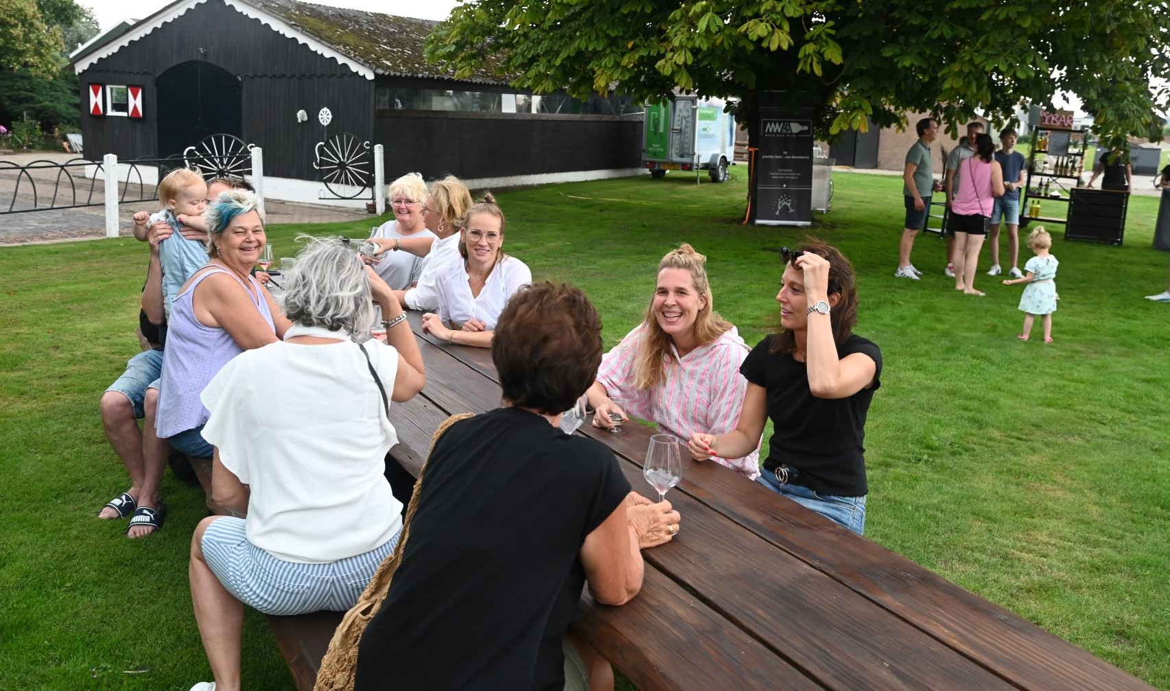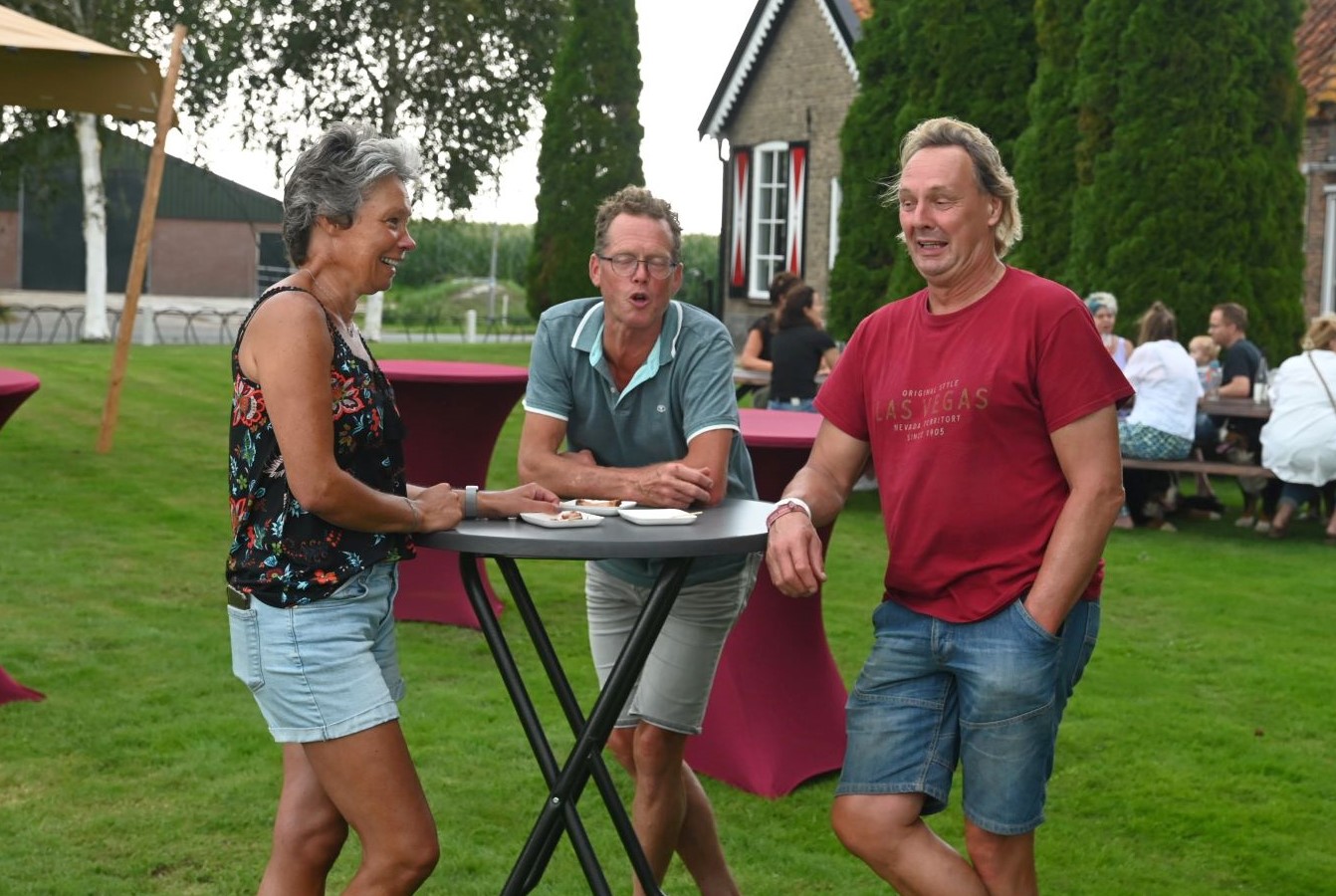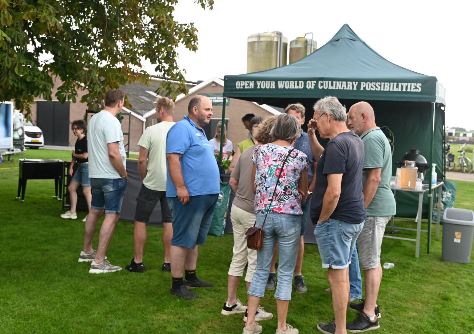 Bij de familie Van Ramshorst, woonachtig op de Bunschoterweg 50, kon iedereen zaterdag 19 augustus bij ’t Holkerhok gezellig komen genieten van een vleesproeverij met kalfsvlees van de barbecue. De gerechten werden klaargemaakt door Wijnand Kookt. Ook kon er worden genipt van wijnen van Meer dan Wijn van Jasmijn Smit uit Nijkerk. De boeren ter plaatse, de families Van Dronkelaar en Van Ramshorst, gaven alle aanwezigen meer informatie over de producten die ze verkochten. De hele tuin stond vol publiek. Foto Kees van den Heuvel