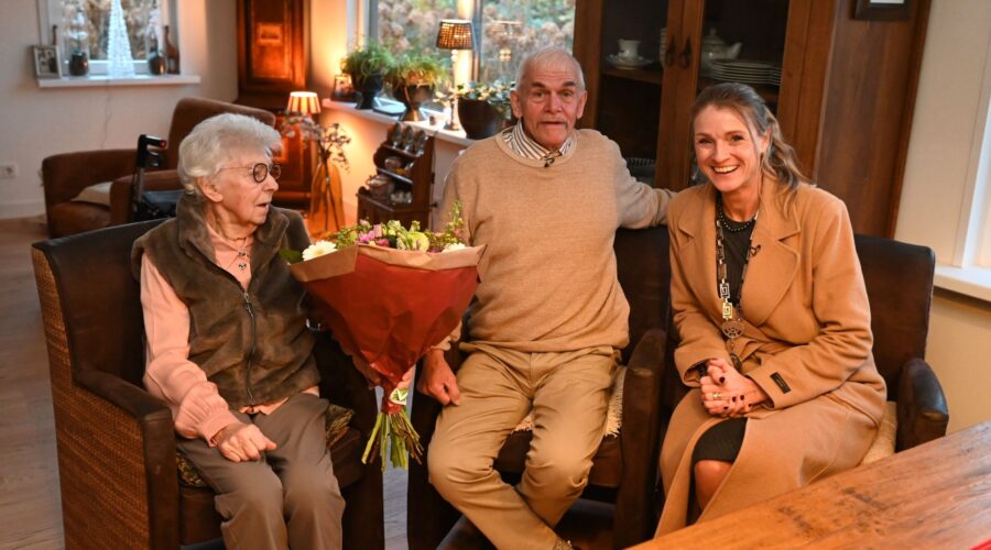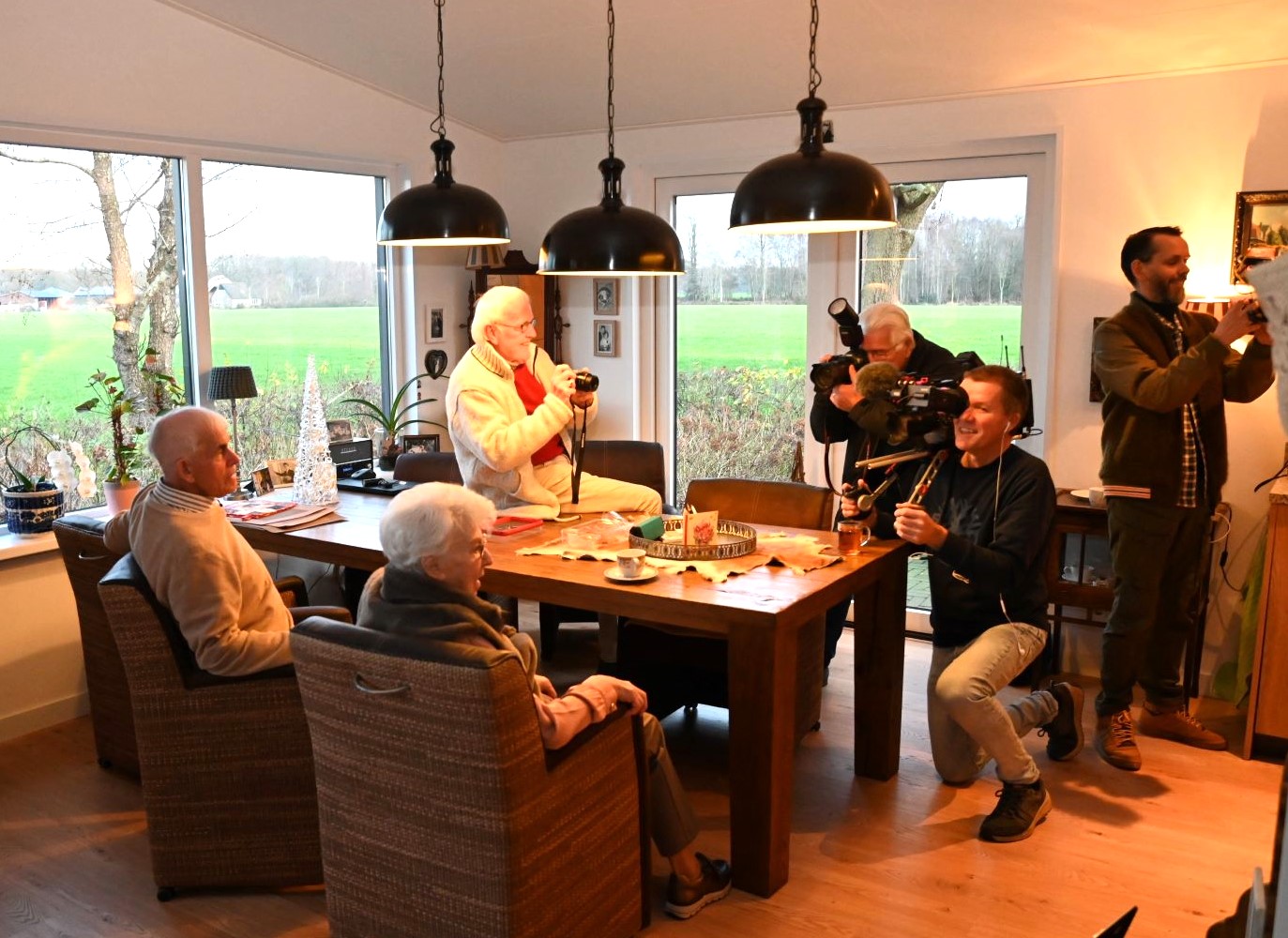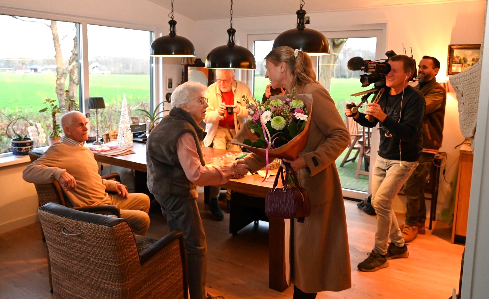 Wouter en Gijsje Koelewijn vierden dinsdag 16 december hun huwelijksjubileum. Ze waren maar liefst zestig jaar getrouwd. Uiteraard kwam burgemeester Tinet de Jonge langs om het huwelijkspaar te feliciteren. Dat was overigens nog een grote verrassing dat de burgemeester langs zou komen. Hun zoon Olaf Koelewijn had namelijk niks verteld. Olaf maakte van de nood een deugd en besloot er gelijk een documentaire van te maken. Wouter en Gijsje leerden elkaar kennen in de jaren 50 op de meidenmarkt in Bunschoten. Ze waren toen 15 jaar. Elke zondagavond was er in Dorpsstraat een meidenmarkt. De meisjes stonden dan aan de kant van de weg. De jongens liepen door de straten. Als je als jongen een leuk meisje zag, vroeg je haar om een snoepje. Als zij dan een snoepje gaf, vond ze de jongen ook leuk. Veel mensen uit Bunschoten-Spakenburg hebben een relatie gekregen via de meidenmarkt. Wouter had dertig jaar een schildersbedrijf en moeders werkte in de huishouding. Foto Kees van den Heuvel