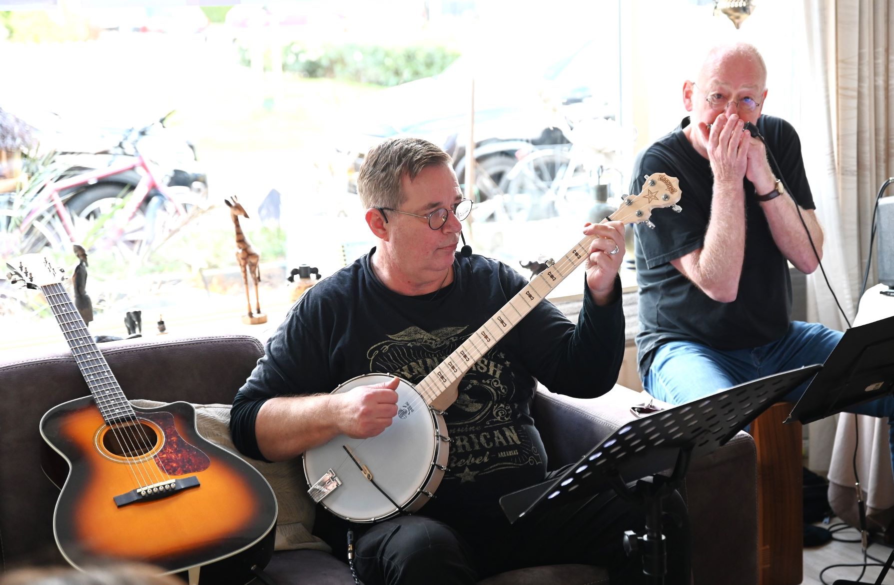 Vanaf 19.30 uur treedt zaterdagavond 19 augustus de groep BB in Law op op het Plein in Nijkerk. BB in Law staat voor de Blues Brothers in Law. Deze muziekgroep bestaat uit de broers Arjen Gerritsma (zang) en Wouter Gerritsma(mondharmonica en perscussie) en Arjens zwager Louwrens (zang, gitaar en banjo). Van tijd tot tijd verzorgen ze een optreden. Arjen en Louwrens maken al jaren geregeld samen muziek. Daar kwam de naam Brothers in Law vandaan. De laatste jaren speelt ook Wouter geregeld mee. Omdat hij graag een bluesje speelt is Blues aan de naam toegevoegd. De mannen spelen allerlei soorten nummers. Dat komt o.a. omdat elk van hen zijn eigen voorkeuren heeft, waar dan vaak de anderen zich ook in kunnen vinden. Zo kan het publiek country horen, Ierse (en Friese) ballads, klassieke pop, sprituals, blues en meer. Foto’s Kees van den Heuvel en Aalt Guliker