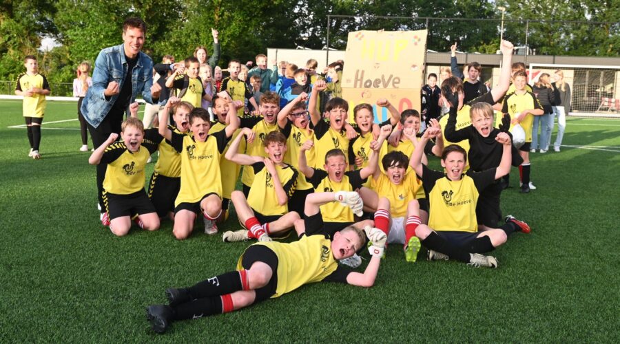 Vrijdagavond 31 mei werden de uitgestelde finales gespeeld om het kampioenschap van het schoolvoetbal Hoevelaken. Het leverde vier uitermate spannende finales op. De belangrijkste, die tussen de groepen 8 van de jongens van de Spreng en de Hoeve, eindigde in een overwinning voor de mannen van De Hoeve. Zij wisten de penalty’s beter te benutten. De winnaars kregen de beker met de grote oren overhandigd door Daan Vinke, speler van het eerste team van Hoevelaken. Er waren eveneens penalty’s nodig bij de finale meisjes voor de groepen 7 tussen De Spreng en het Blokhuus. De laatste school won uiteindelijk met 8-7. Bij de groepen 7 van de jongens won De Hoeve van Blokhuus. Verder was er nog een finale tussen de groepen 8 van de meisjes. Willem Farel werd hier tweede en winnaar werd Blokhuus. Foto en Kees van den Heuvel