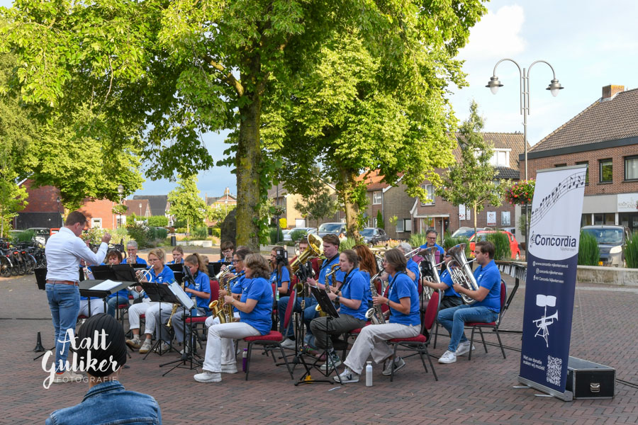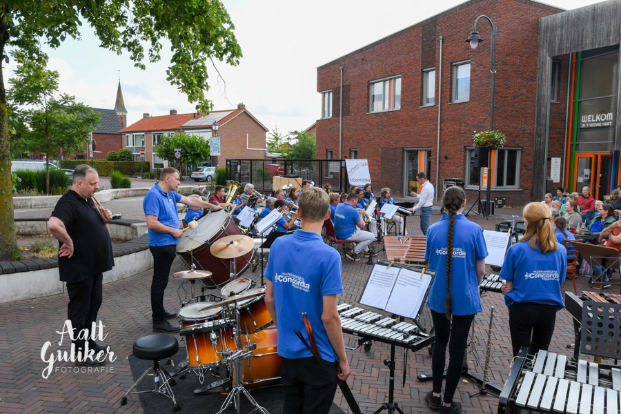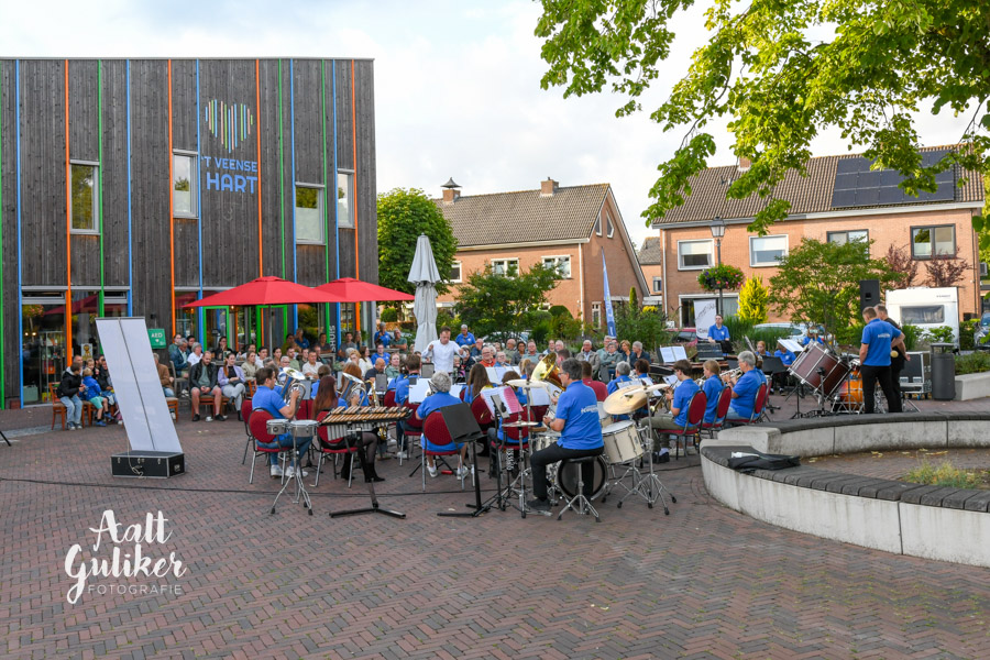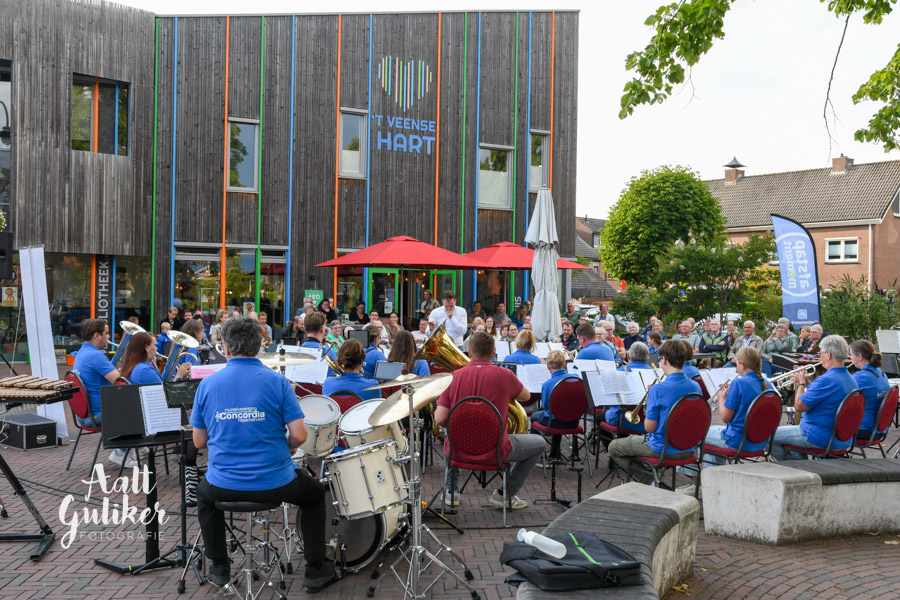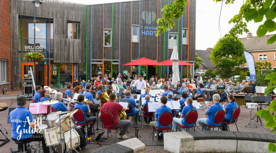 Ondanks dreigende wolken vond woensdagavond 16 juli het jaarlijkse zomerconcert van Muziekvereniging Concordia plaats op het dorpsplein voor ‘t Veense Hart. Het terras voor het dorpshuis zat vol met publiek dat zichtbaar genoot van een afwisselend en zomers programma. De avond werd geopend door het opleidingsorkest, dat volgens pr-man Dirk Jan van Drie inmiddels bijna net zo groot is als het fanfareorkest zelf. “Het is mooi om te zien hoe jonge muzikanten, samen met ervaren leden, een volwaardig orkest vormen. Dat zegt iets over de toekomst van onze vereniging,” aldus Van Drie.