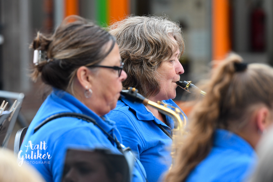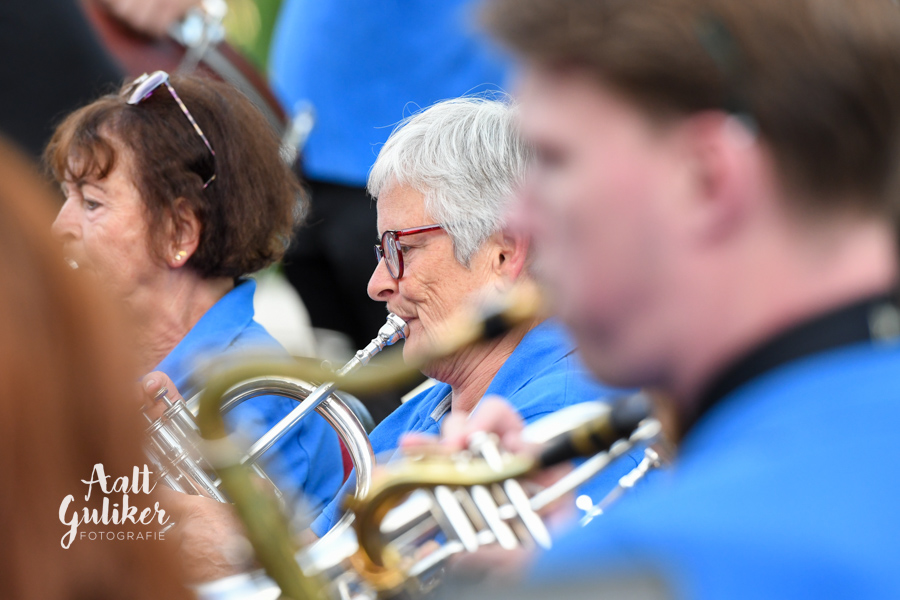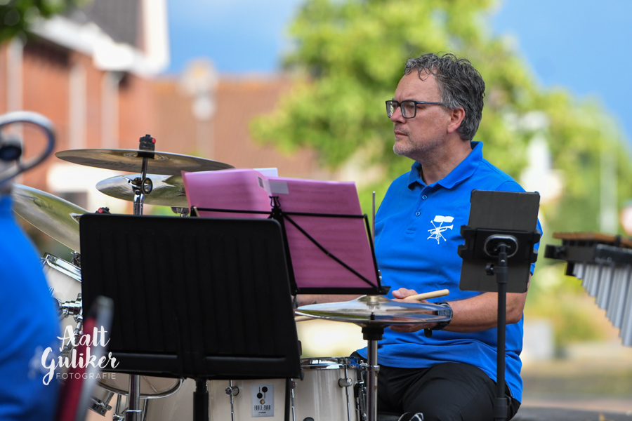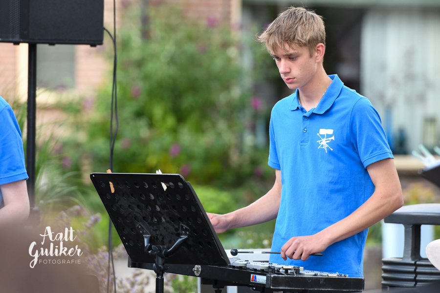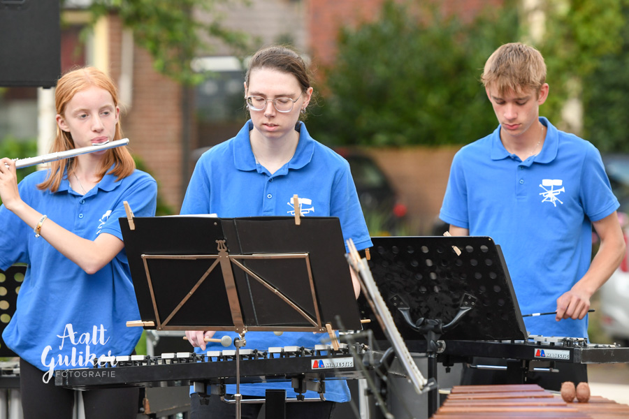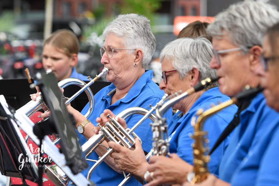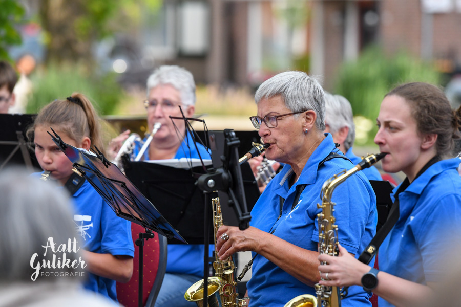 Na het openingsoptreden wisselden het fanfareorkest en het Mallet- en Percussie-ensemble elkaar af. Het repertoire bestond uit een gevarieerde mix van vrolijke, lichte muziekstukken, met hier en daar een traditionele mars, passend bij het fanfarekarakter van de vereniging. Een speciaal moment was er voor Madeleine Ward en erelid Gerard Berculo. Voor beiden, die jarig waren, werd het welbekende “Lang zal ze leven” gespeeld, tot groot enthousiasme van het publiek.