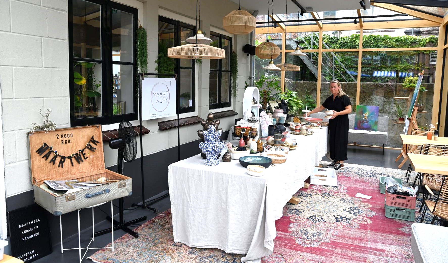 Zaterdag 14 juni veranderde de bloeiende binnentuin achter de winkel van Streams aan het Verlaat in een sfeervolle zomermarkt. Diverse lokale makers toonde er hun unieke producten, er was live schilderkunst, kinderactiviteiten en ijs van de ijskar. Er kon kennis worden gemaakt met onder andere Bag of Joy, Alsjelieft, Tamar.illustrations, Ida-Paula Art, Agift, GoedGemaakt en Stukje Vierkant. Foto Kees van den Heuvel