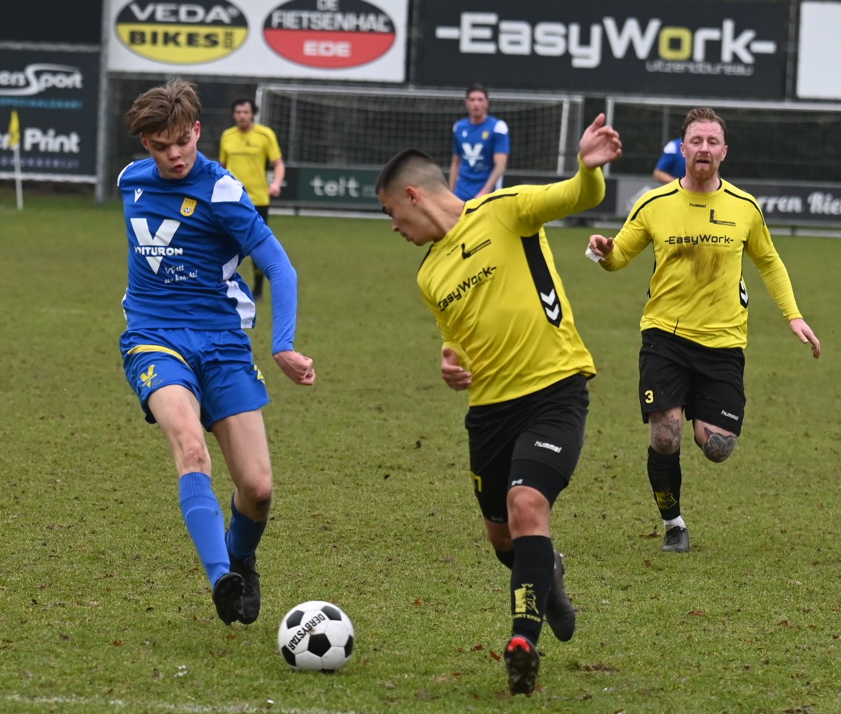 Een hele zure middag voor NSC Nijkerk. Lange tijd dacht het team met de overwinning aan de haal te gaan bij Lunteren, maar de tegenstander wist in de vijfde minuut van de blessuretijd toch nog een goal te maken, waardoor beide teams de punten moeten delen (1-1). Bart Posthouwer maakte na drie minuten de 0-1 en later kreeg hij nog een grote kans. Op het modderige veld van Lunteren hielden de Nijkerkers het vervolgens lange tijd vol, met tal van goede reddingen van de nieuwe keeper Sven Ruitenberg. ,,Als de goal van Lunteren een seconde voor tijd valt, dan is dat inderdaad zuur,” aldus trainer Rob van Diermen.